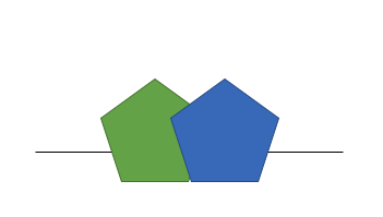 Overlapping - When the blue Hexie is placed over the green, that portion of the green Hexie will not visible.