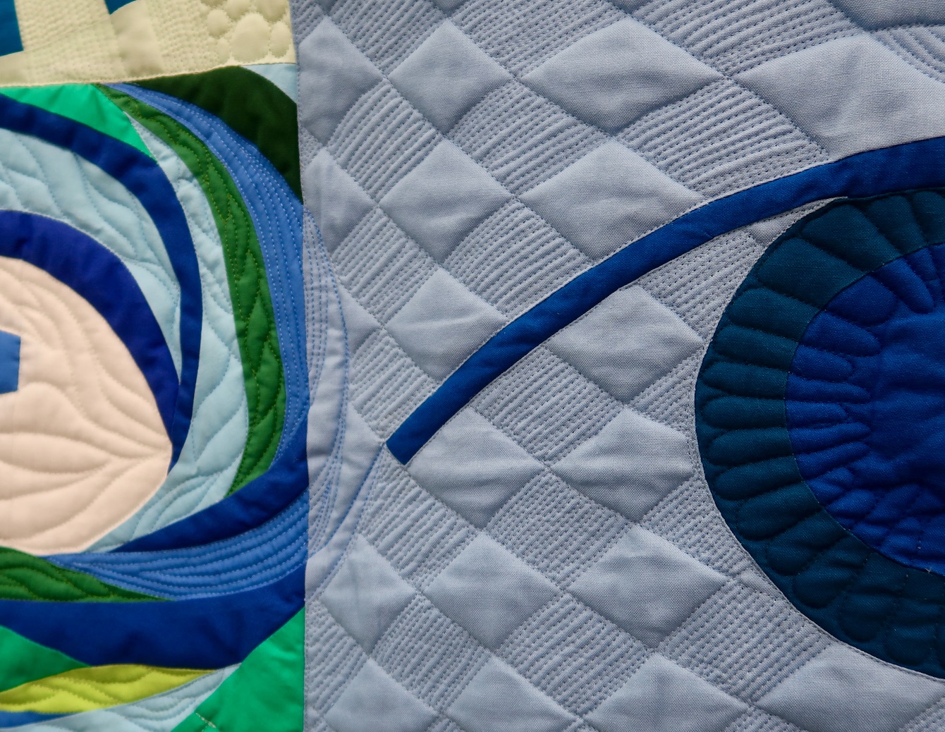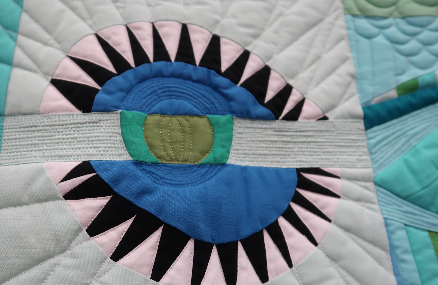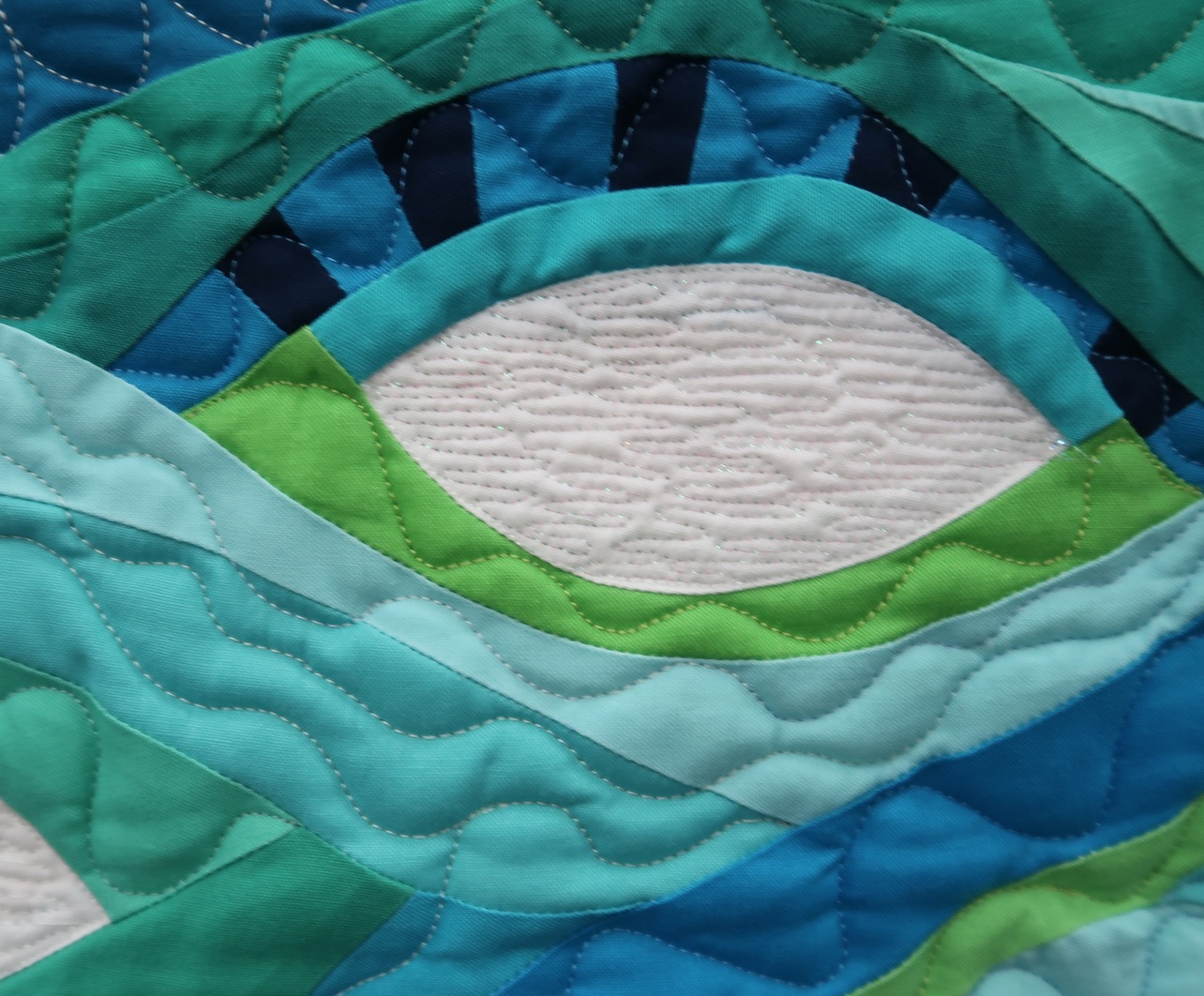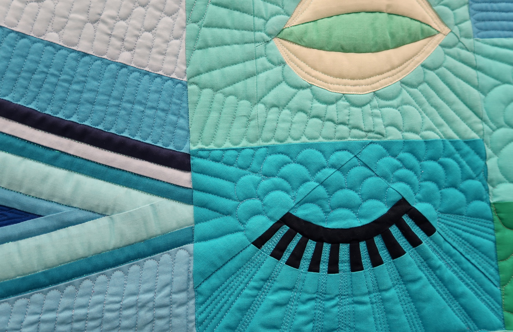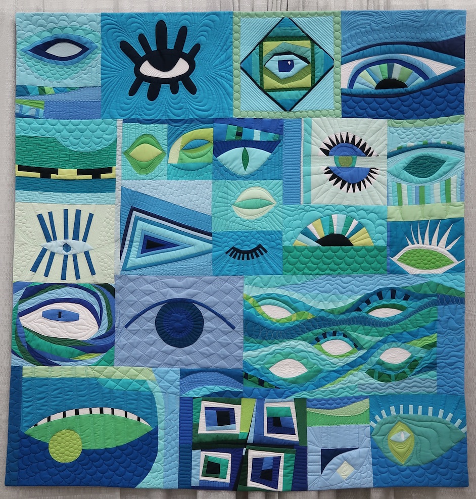 We love the "vision" behind this quilt and we might have to keep our "eyes" on this group of quilters from the beautiful beach city of Capitola in California. Take a look at all the different quilting designs, they are quite "eyelightening". (groan).