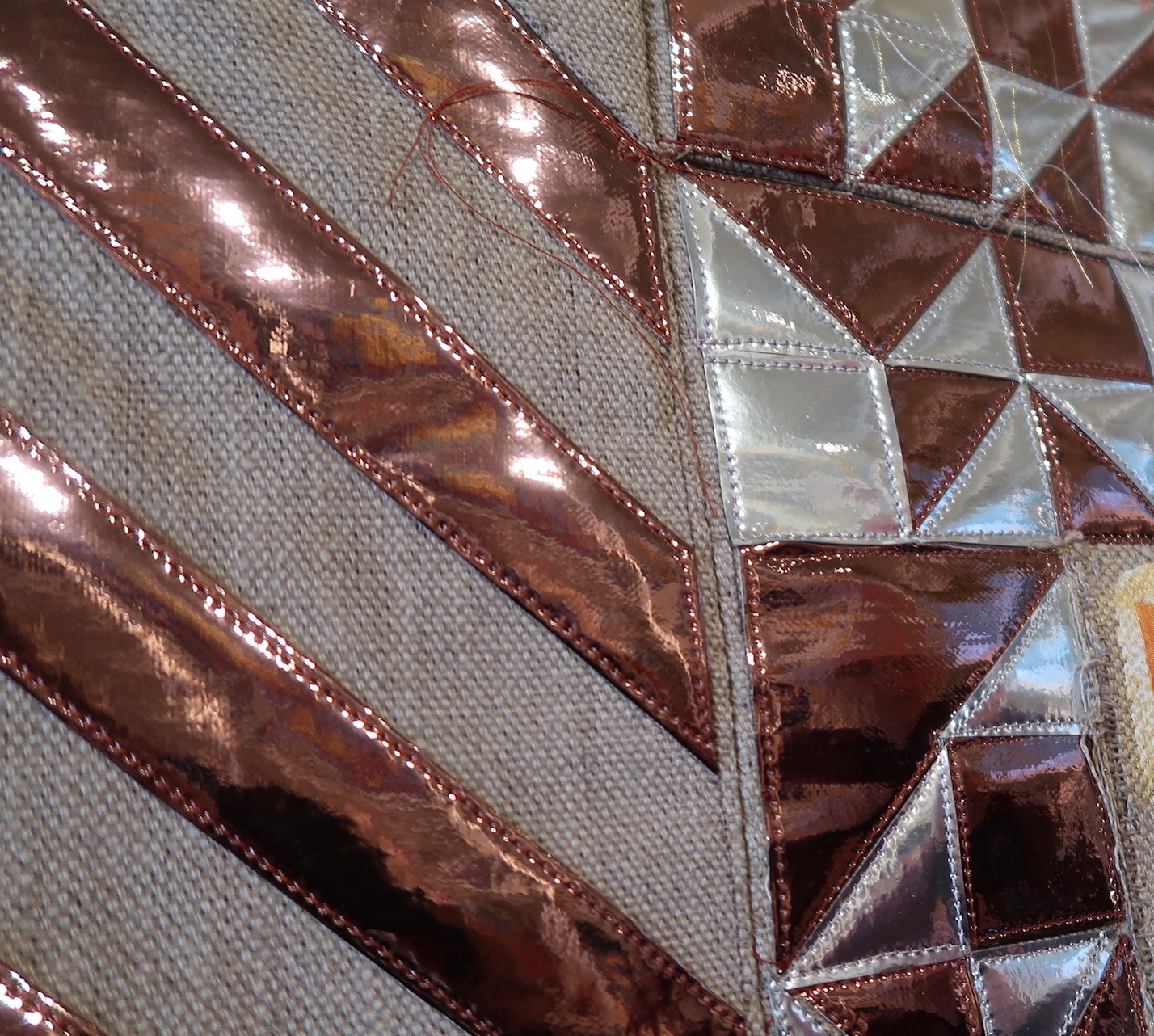 We continue our feature on quilts from the Studio Art Quilt Associates (SAQA) exhibit, Layered & Stitched: Fifty Years of Innovation, as featured at the Texas Quilt Museum. The exhibit is described as: