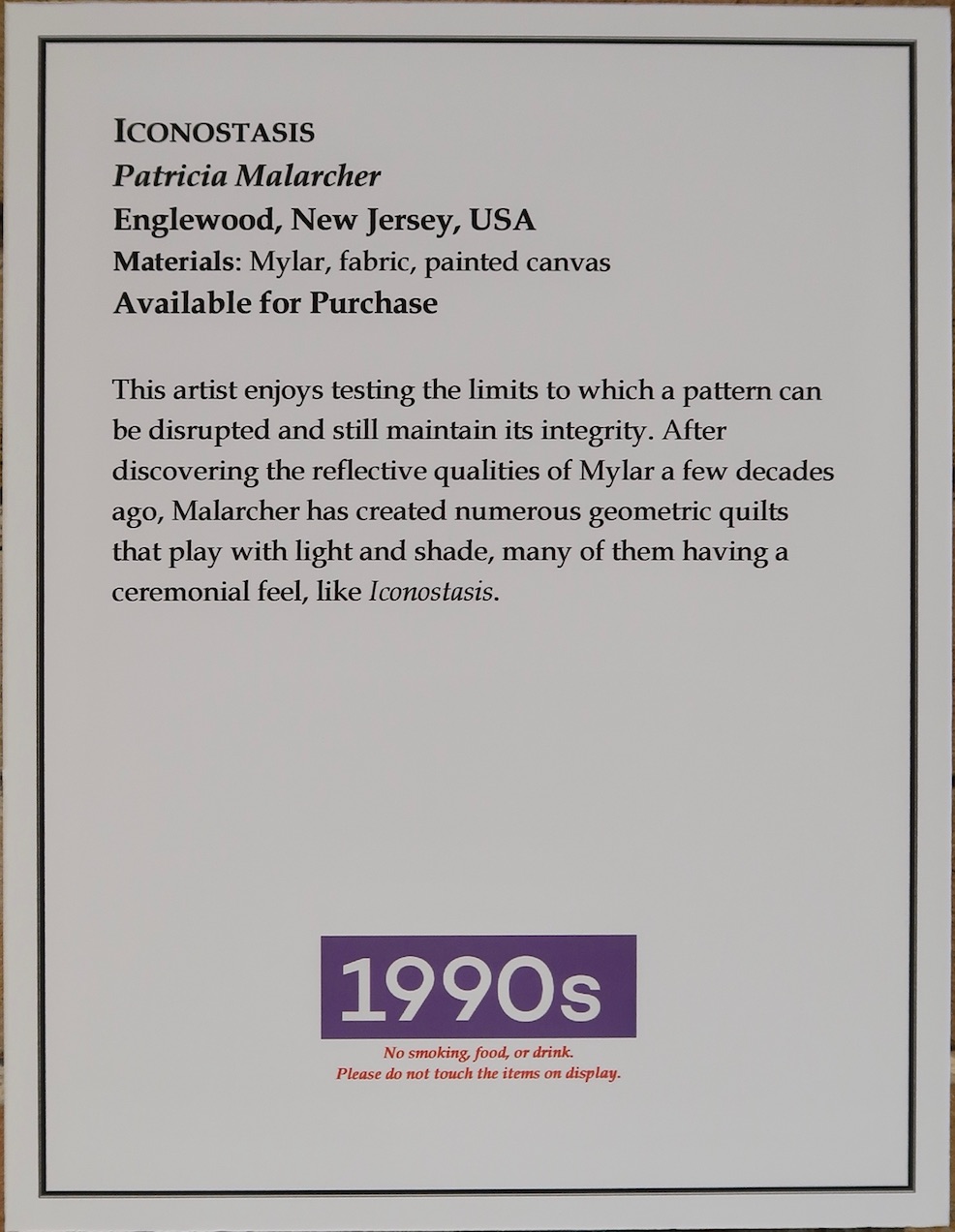 Please enjoy the second quilt from the exhibition by Patricia Malarcher.