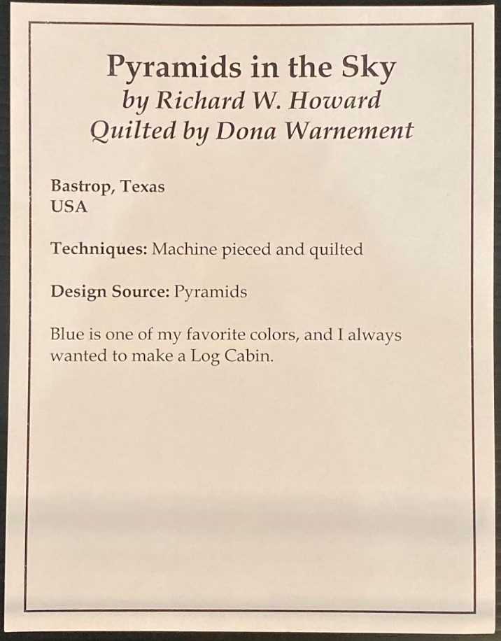Please enjoy the tenth quilt from the exhibition by Richard W. Howard, quilted by Dona Warnement.