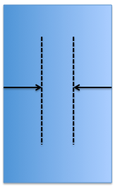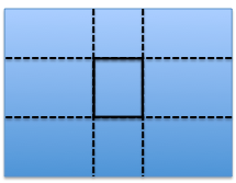 2. You will now work with group B. Using one rectangle, measure and draw a line 2 1/2" from either side. Measure and draw a line 1 1/2" from top to bottom. The resulting drawn lines should be a 1" square in the center of your rectangle. Repeat for the remaining 5 colors in group B.