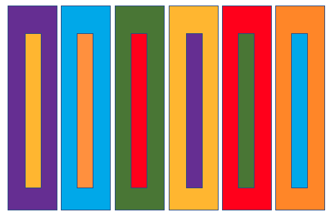 4. Place a color from group A behind a group B as in the image above. Notice how the colors vibrate as well as move forward/recede.