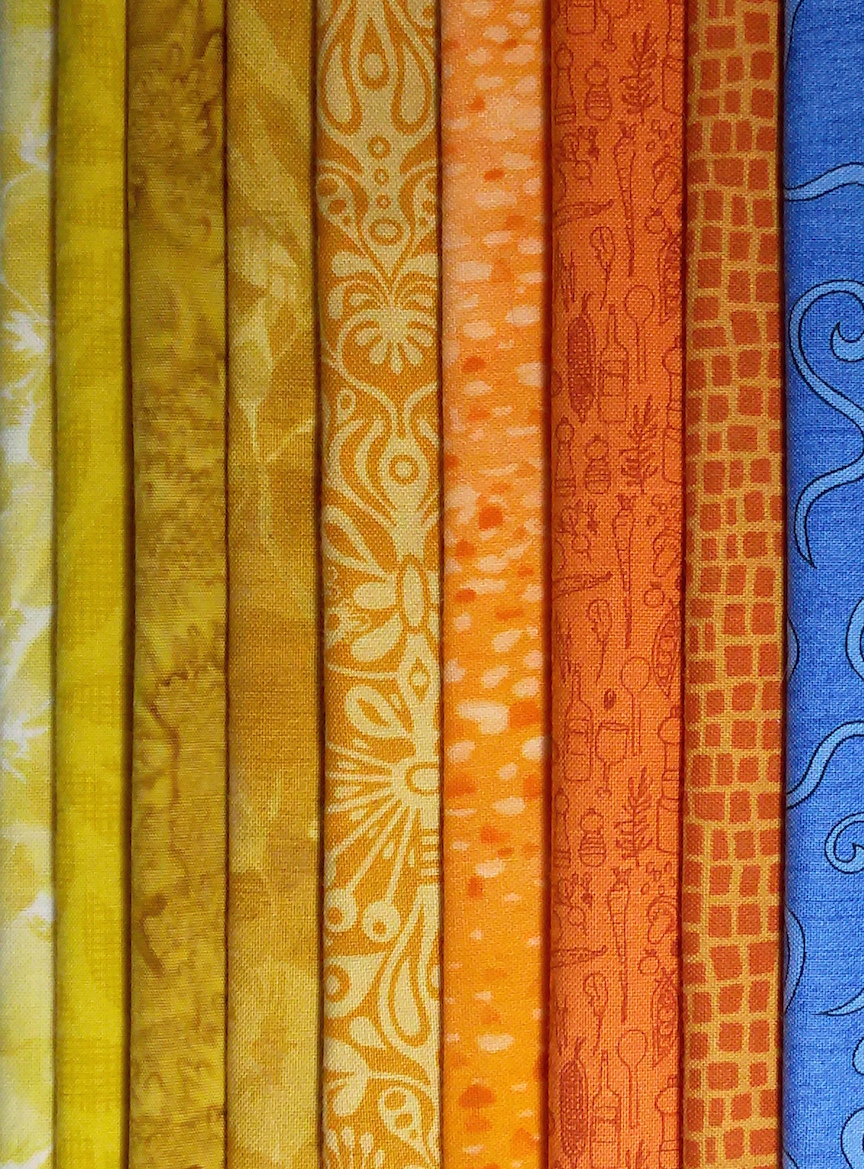 Using our Essential Color Wheel, let's put this to the test when selecting fabric from a stash.
