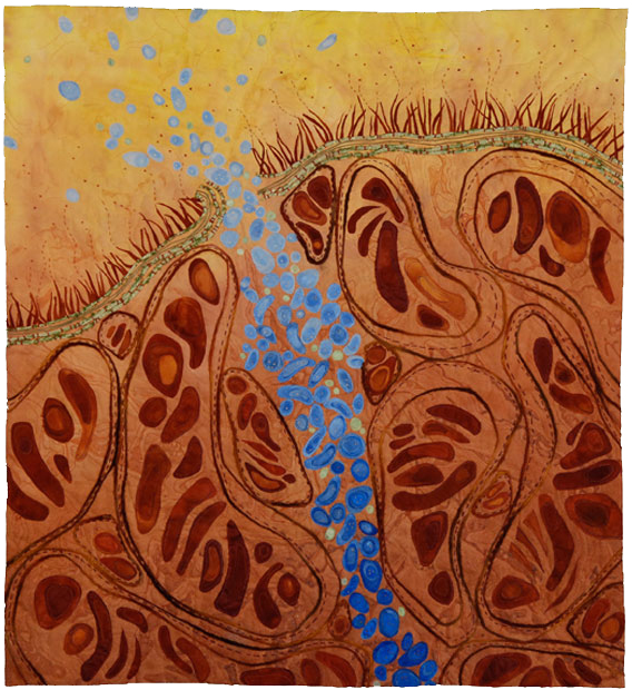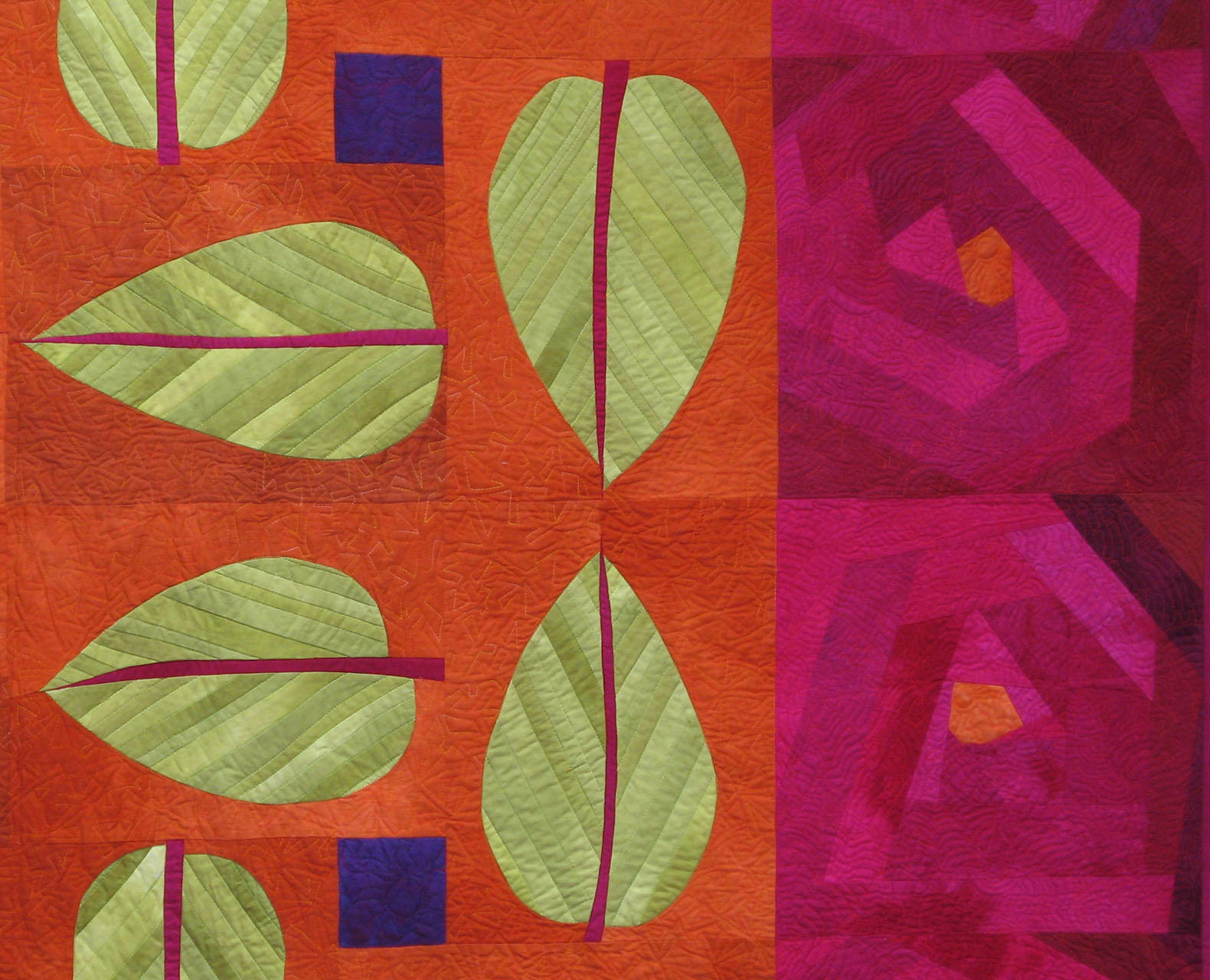 That photo inspired the color theme for my large quilt Shimmering Foliage. I used the one color I like the most, lime green, as my dominate color choice for the leaves. I then used the two other accent colors, fuchsia and orange, to really make this quilt vibrate. This quilt went on to win some awards, and it is still one of my all-time favorite quilts.