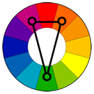 The split-complimentary color scheme is often a good choice for beginners because it is difficult to mess up.