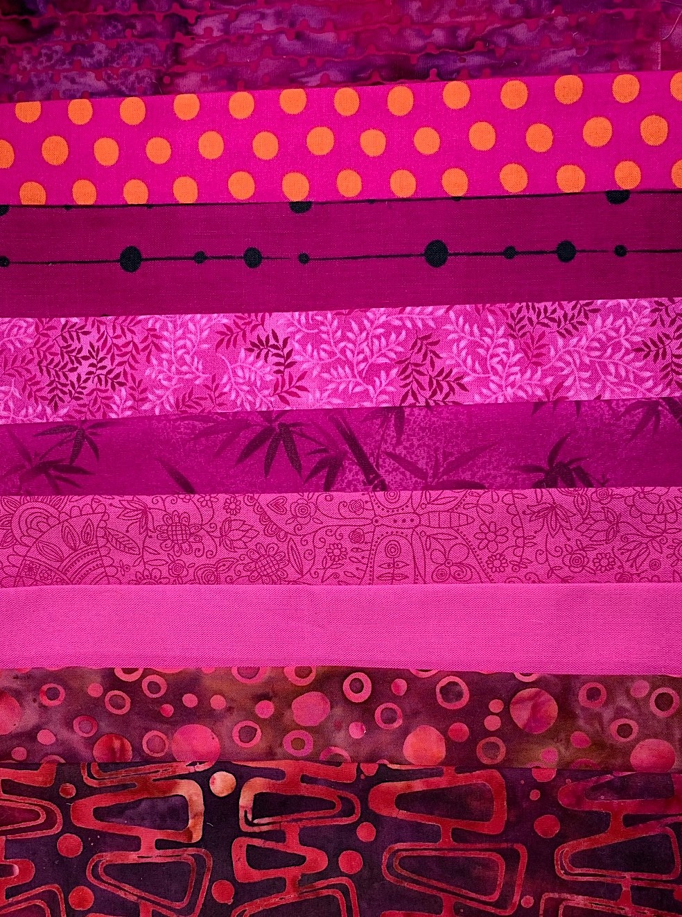 Let's say you want to make a lone star quilt using only magenta fabrics. If you select all mid-value fabrics (Collection 1), the beautiful star design will get lost or muddy. No longer are you able to determine the uniqueness of the star elements.