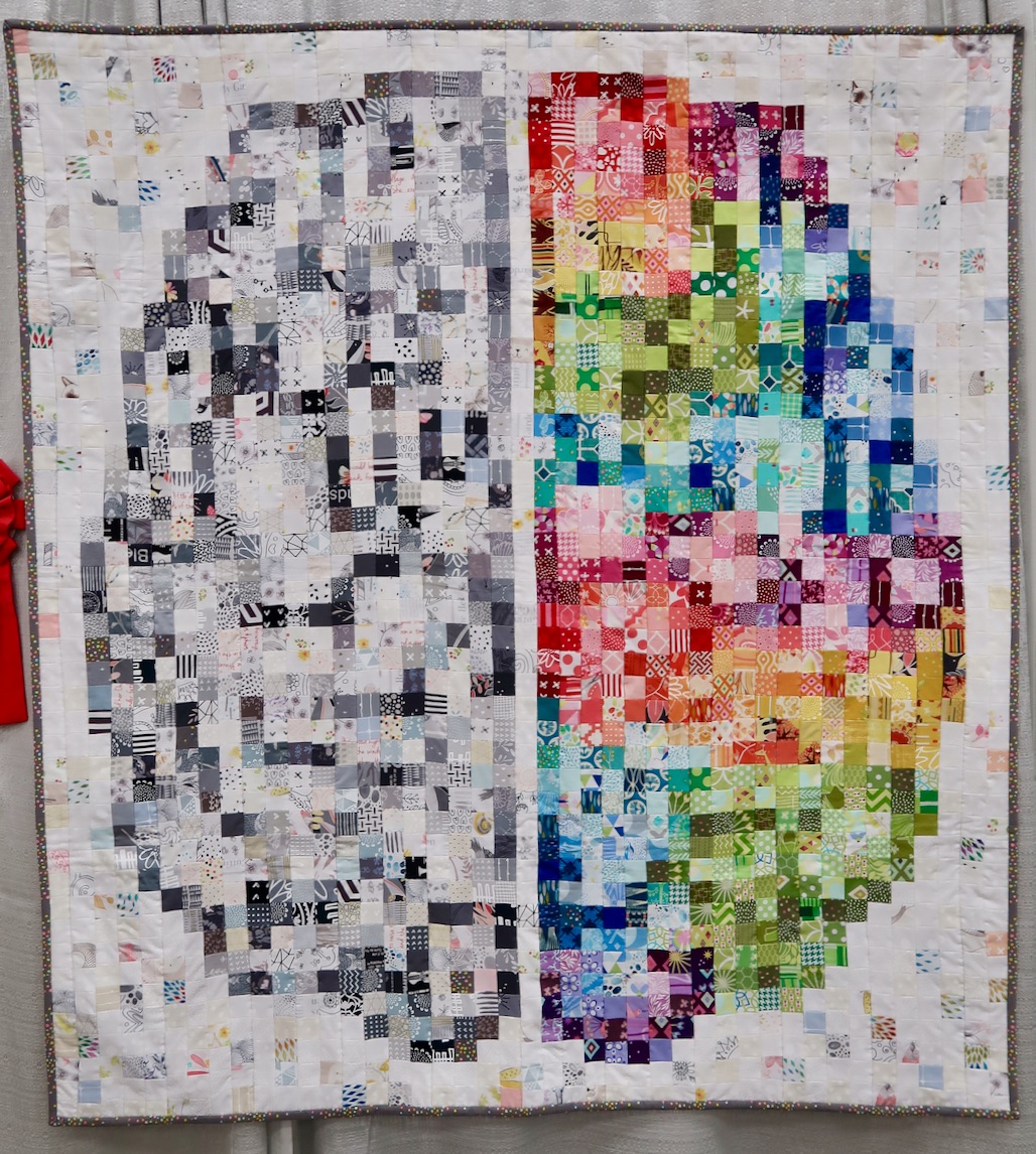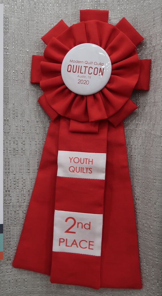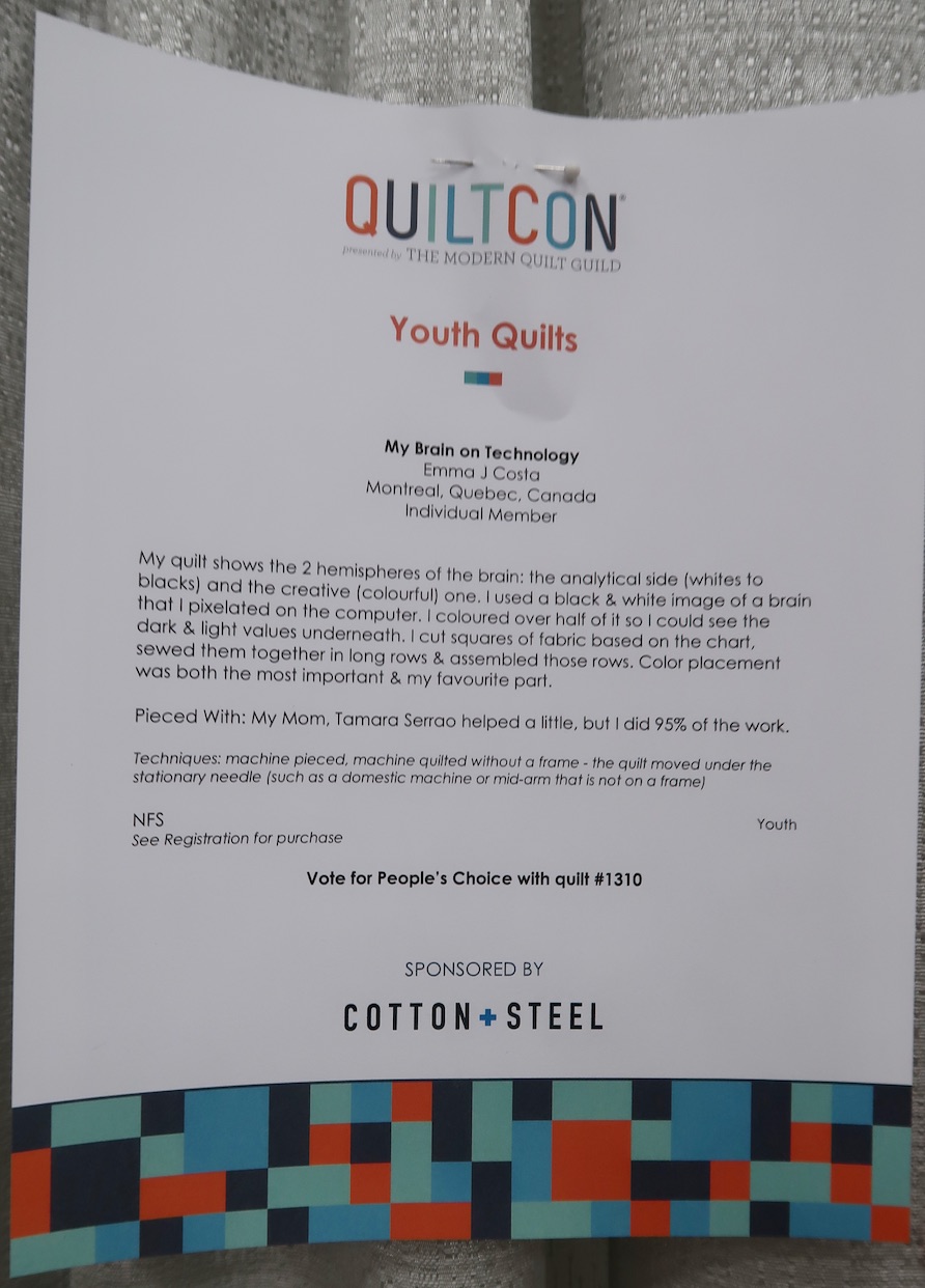 My Brain on Technology by Emma J. Costa won Second Place, Youth Quilts, sponsored by Cotton + Steel, at QuiltCon 2020.