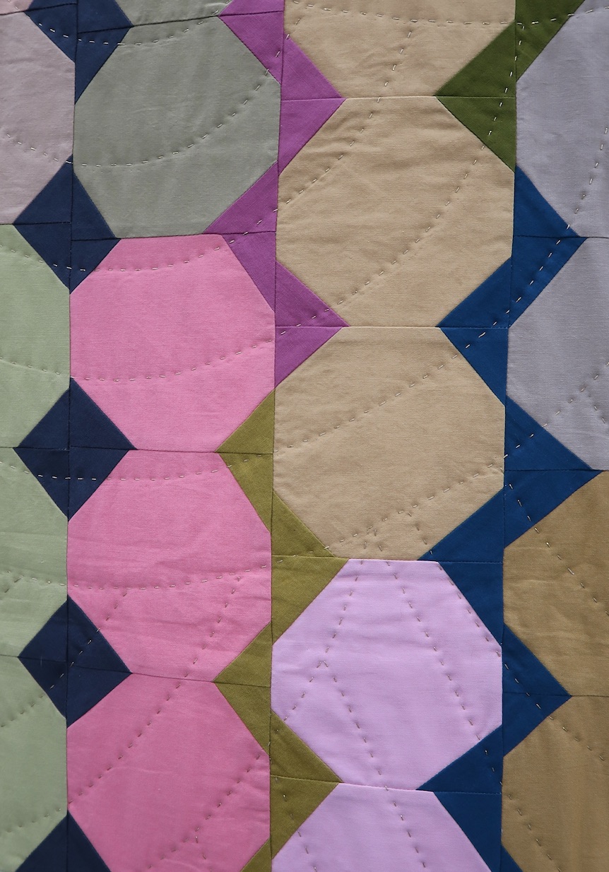 On the bright side, this quilt shows a lot of skill, and I'm intrigued by the use of hand quilting. It works nicely with the liberated piecing style of the blocks.