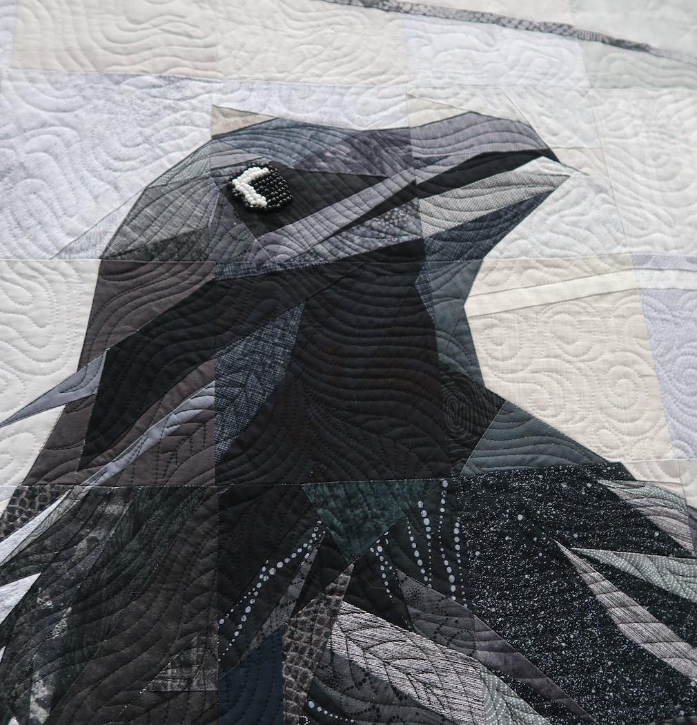 Ricky would love this quilt. Why? because it's a spectacular, larger than life raven and Ricky loves ravens. Inspired by Edgar Allen Poe's poem, The Raven, the image was based on a painting by Lindsay Kustusch.