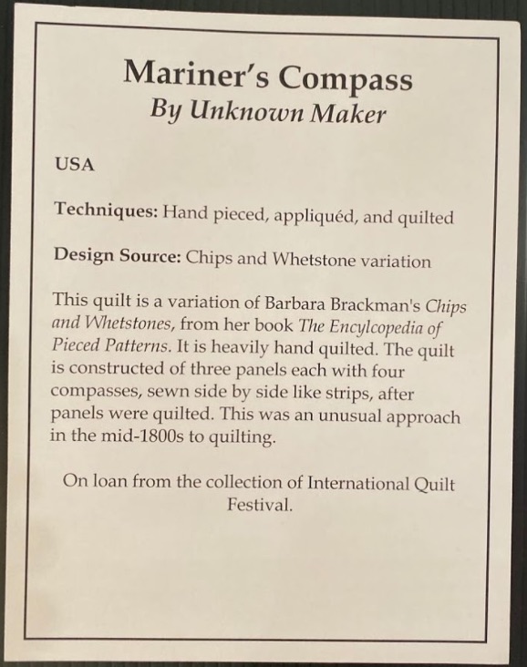 Title of Quilt: Mariner's Compass