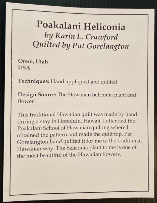 Title of Quilt: Poakalani Heliconia