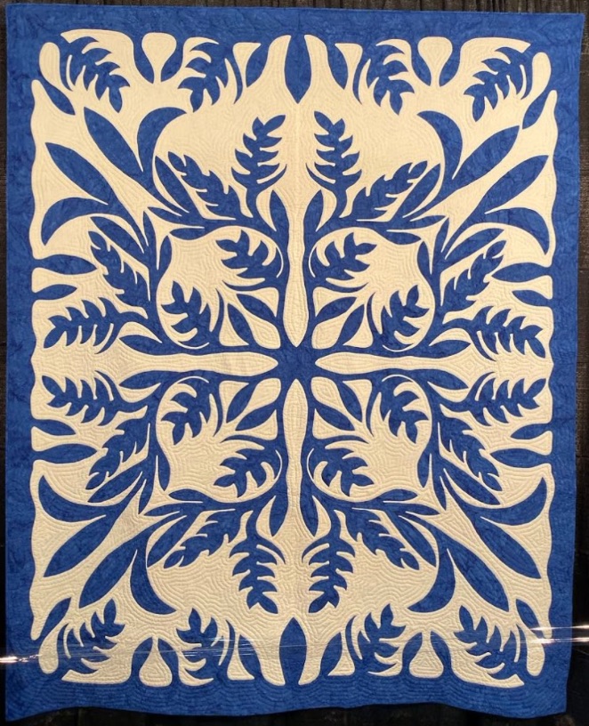 We continue our selection of quilts exhibited in 2019 at the Houston International Quilt Festival as part of their 45th Anniversary, the Sapphire Anniversary. The Sapphire Celebration exhibit is described as: