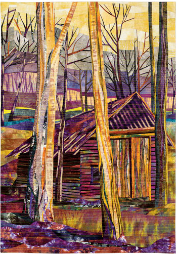 Layer 5 (background): An atmospheric perspective background is the lightest of all layers. You can make it appear close to the previous layer by using fabrics that are close in value, tonality, and detail to it. If the background is to appear far in the distance, the fabrics will be considerably lighter, grayer, and less detailed than the layer before it. Again, I use a lot of backsides of fabrics for this layer. Blurred fabrics and other fabrics that have subtle textures work well in the background, as long as they are more toned and lighter than the layer above.