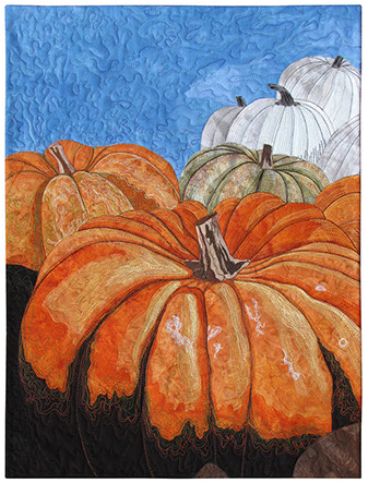 Heirloom Pumpkins by Susan Brubaker Knapp (Show 901, Show 1709). [Image courtesy of Susan Brubaker Knapp]. Urban Desires by Michele Sanandajian - Detail. (Show 2109). [Image by TheQuiltShow.com].