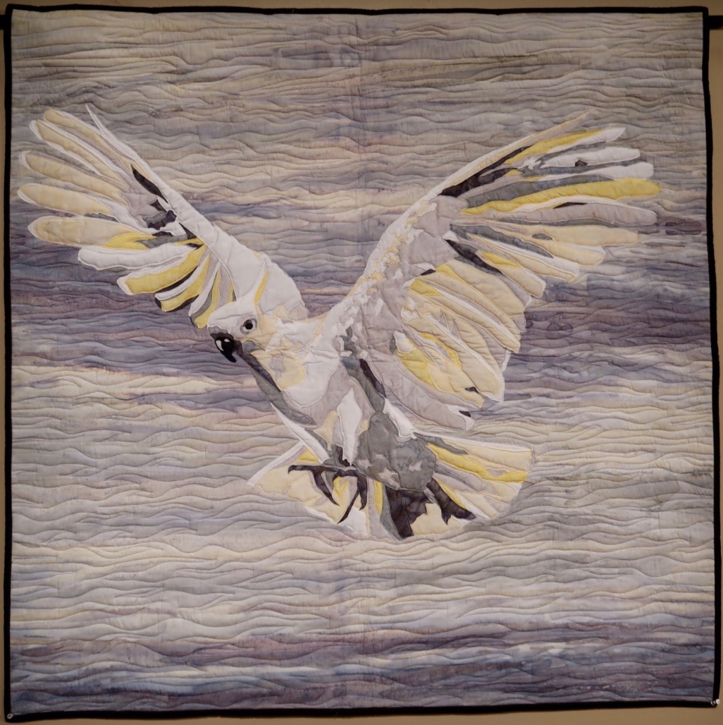 Cheeky, the local cockatoo up the road from Michelle de Groot's house, is the featured bird in her quilt, The Pirate.