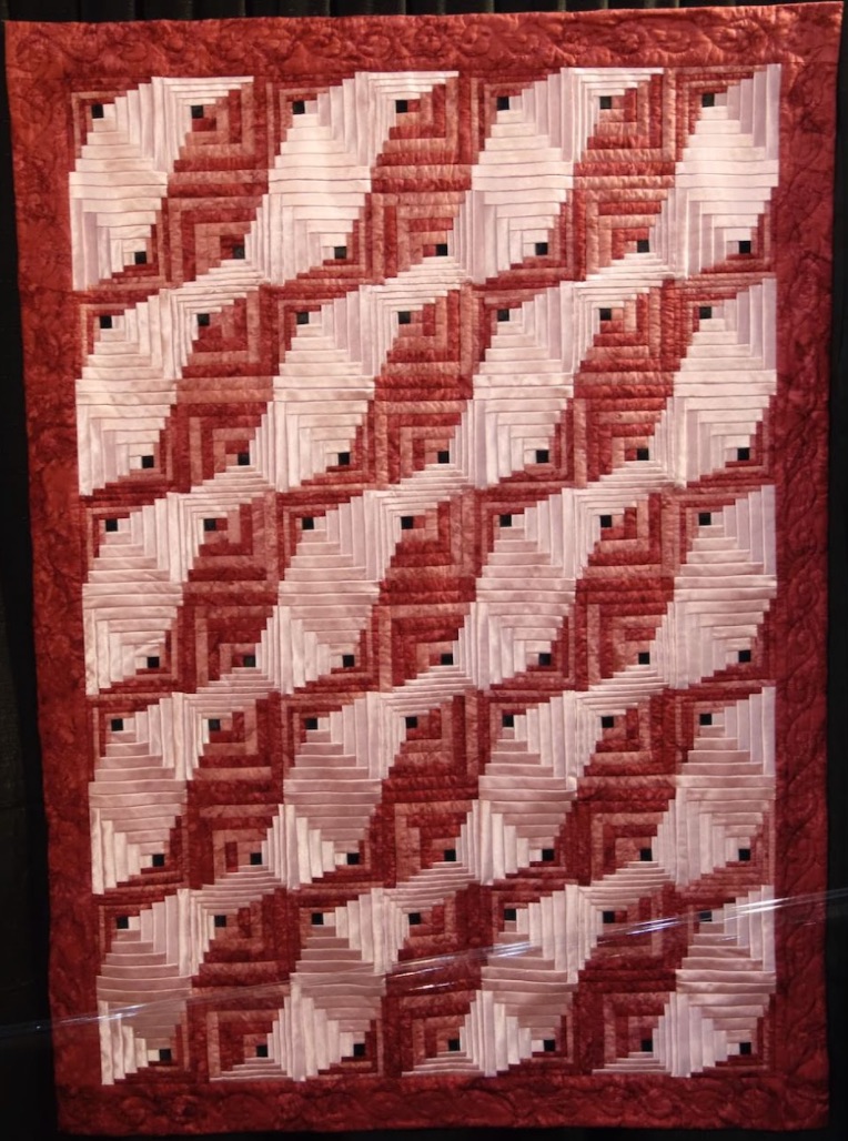 TQS continues its feature of quilts from the exhibit Log Cabin Today! Presented by Brigitte Morgenroth, a series of log cabin quilts created by Brigitte Morgenroth that were featured at the Houston International Quilt Festival in 2015. The exhibit is described as: