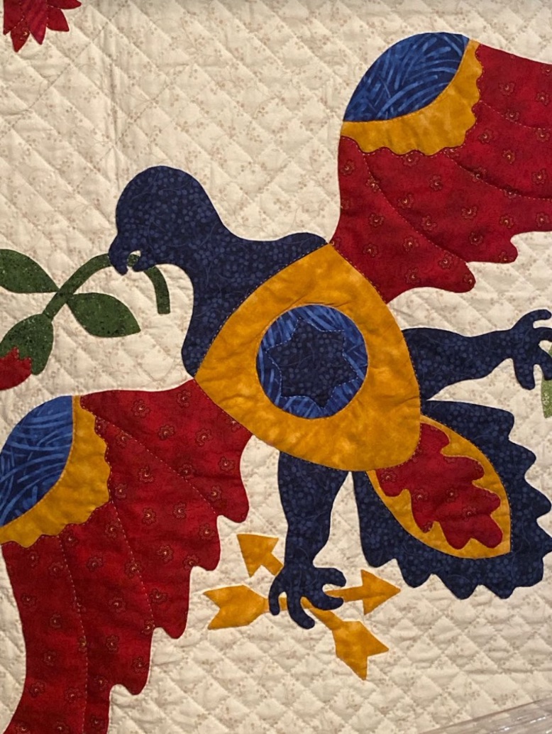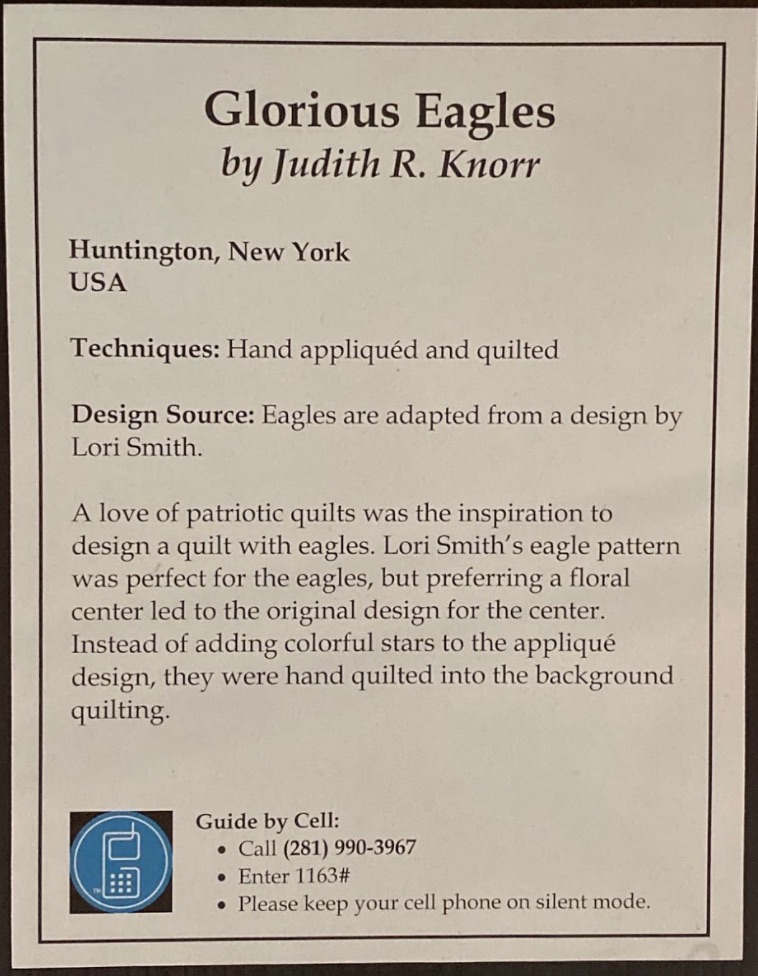 Inspired by a love for patriotic quilts, Judith R. Knorr's Glorious Eagles, which is both hand appliquéd and quilted, flew high as part of the In the American Tradition Exhibit at Houston 2019.