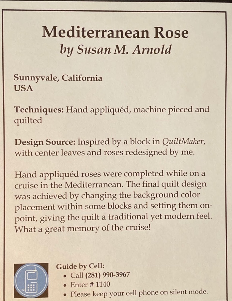 Mediterranean Rose by Susan M. Arnold of Sunnyvale, California was featured in the In the American Tradition Exhibit at Houston 2019.