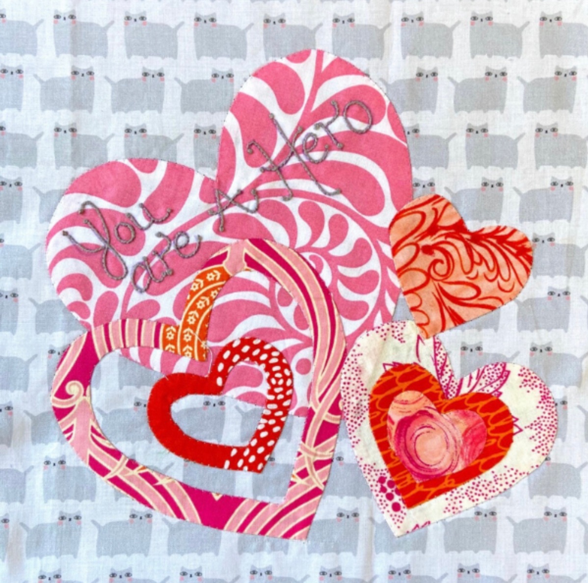 Alex designed a block with a truly heartfelt message, combining appliqué and embroidery. Here is Alex's pattern: