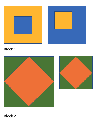 - Create a Pattern & Repetition design using just one block from either: the Square in a Square set (Block 1) or Diamond in a Square (Block 2).