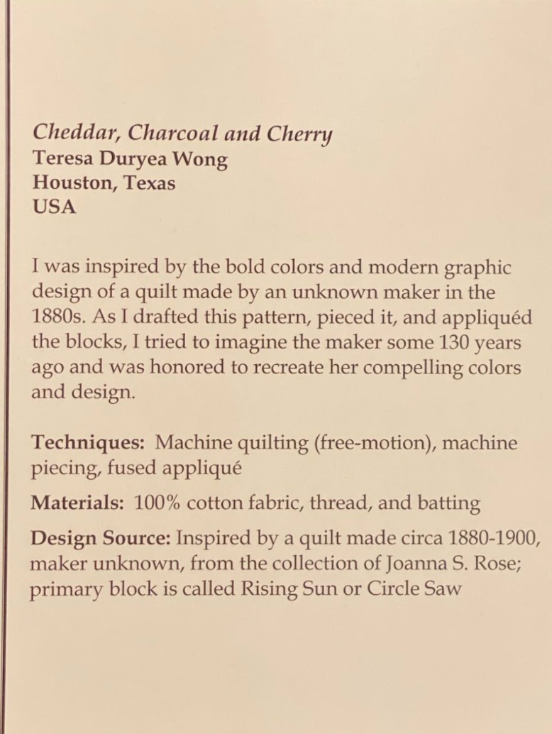 Cheddar, Charcoal and Cherry by Teresa Duryea Wong of Houston, Texas was featured in the Balanced Piecing and Appliqué category at Houston 2019.
