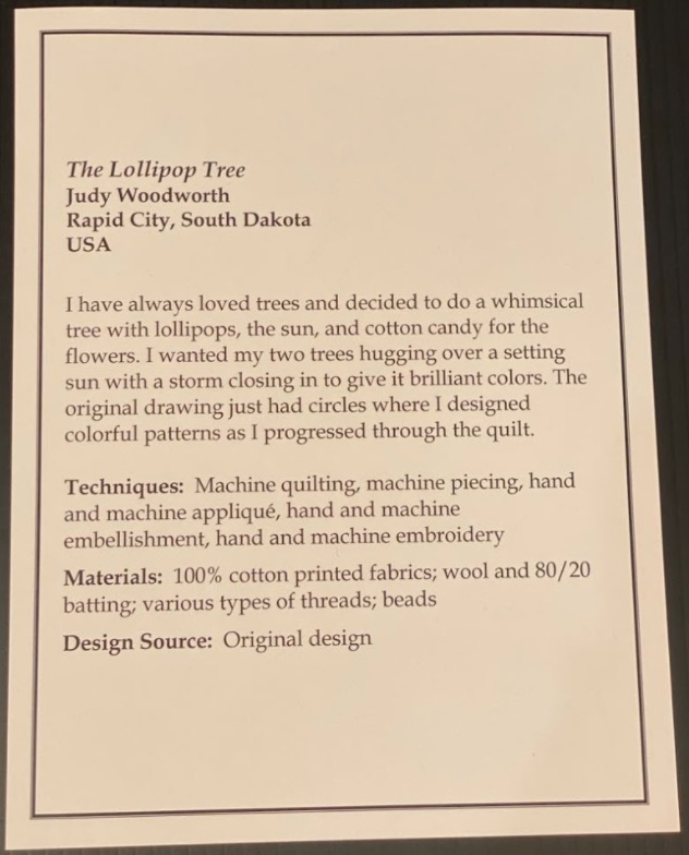 The Lollipop Tree by Judy Woodworth of Rapid City, South Dakota was featured in the Balanced Piecing and Appliqué category at Houston 2019.