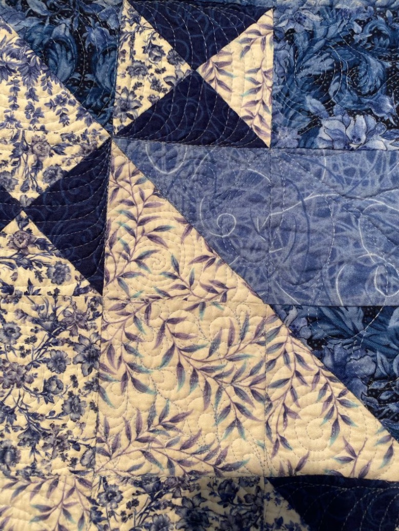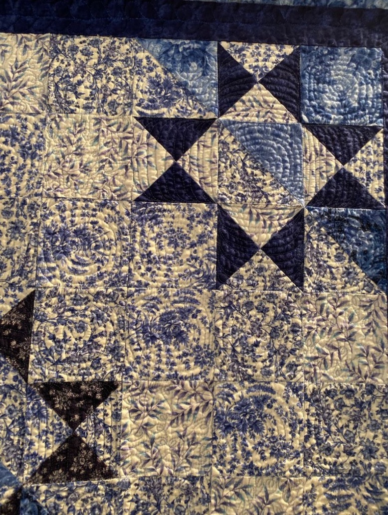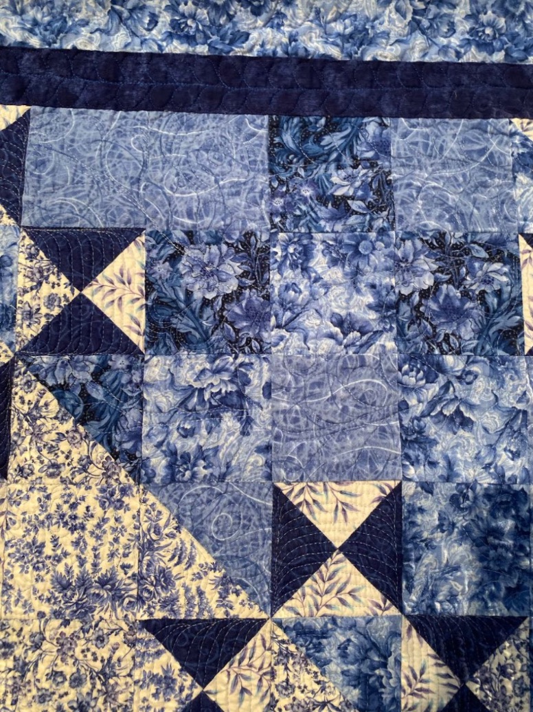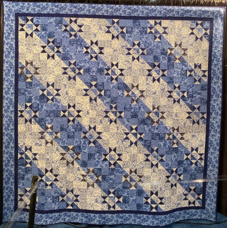 We continue our selection of quilts exhibited in 2019 at the Houston International Quilt Festival as part of their 45th Anniversary, the Sapphire Anniversary. The Sapphire Celebration exhibit is described as: