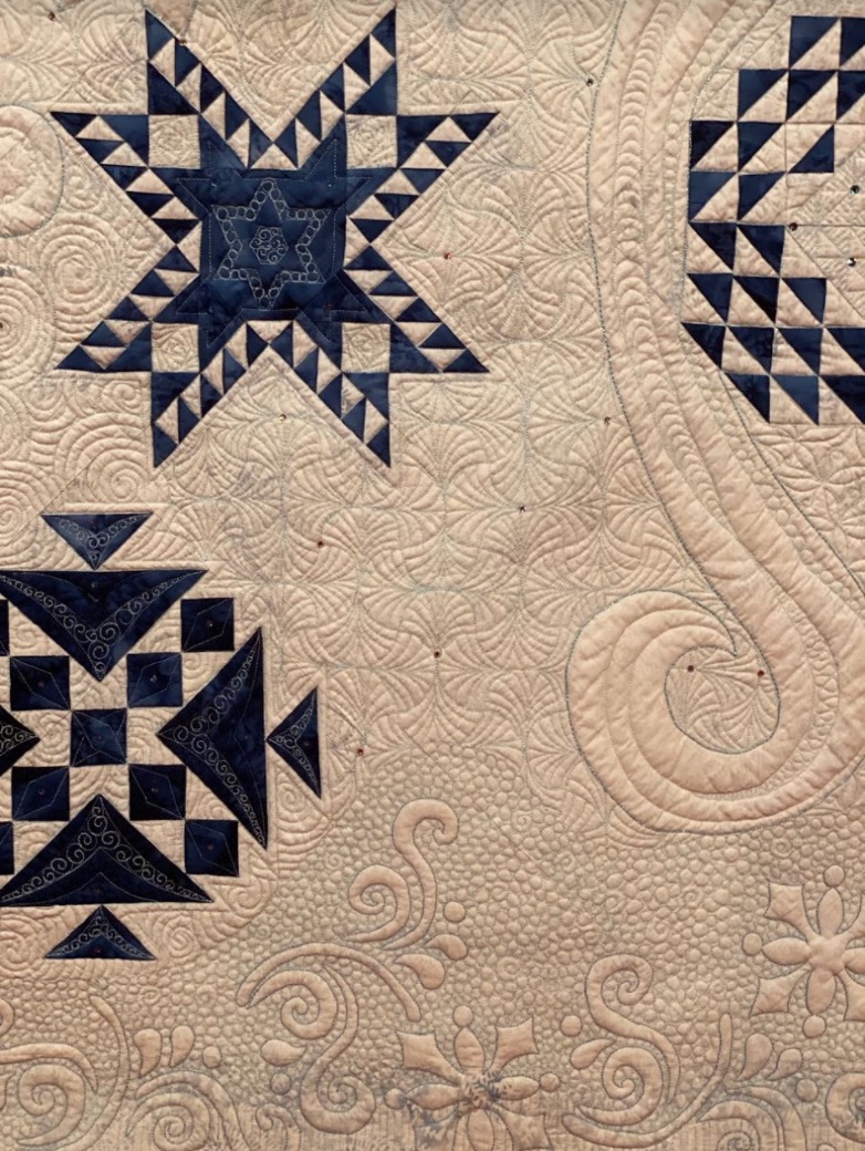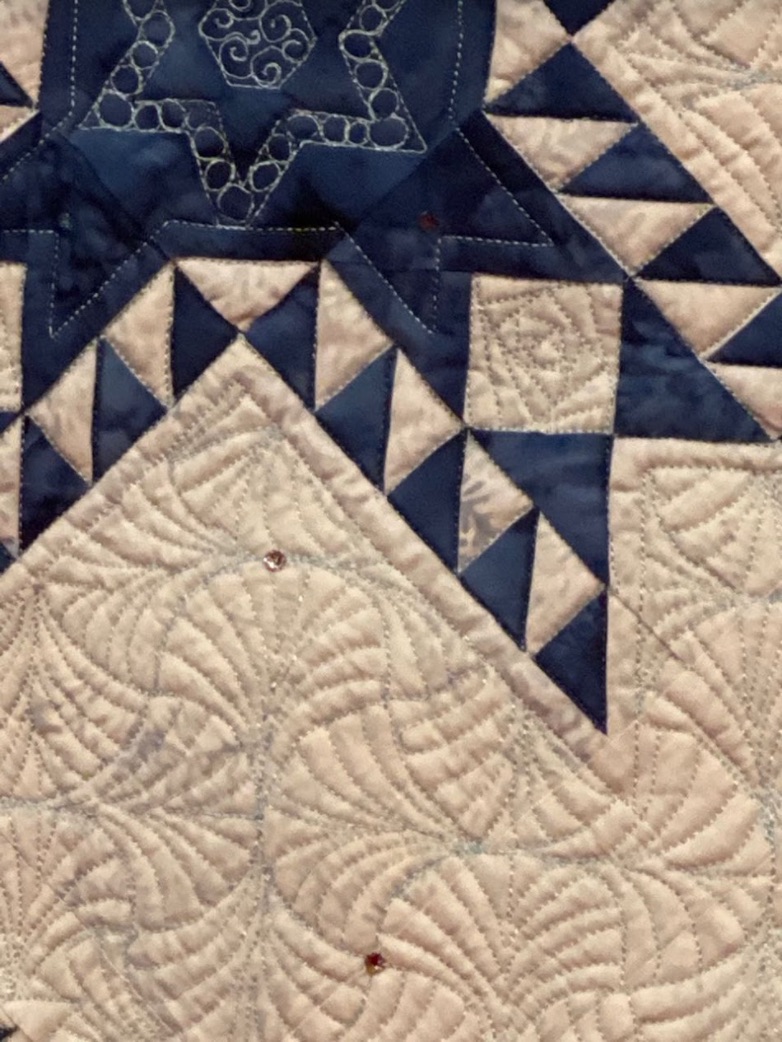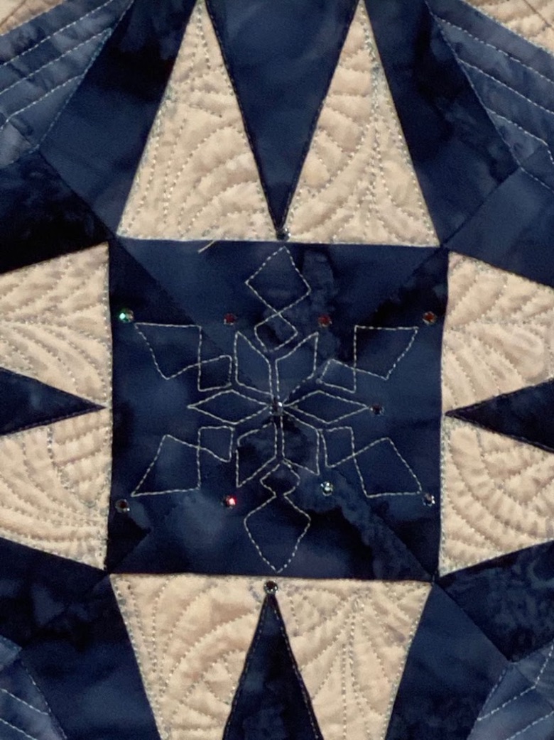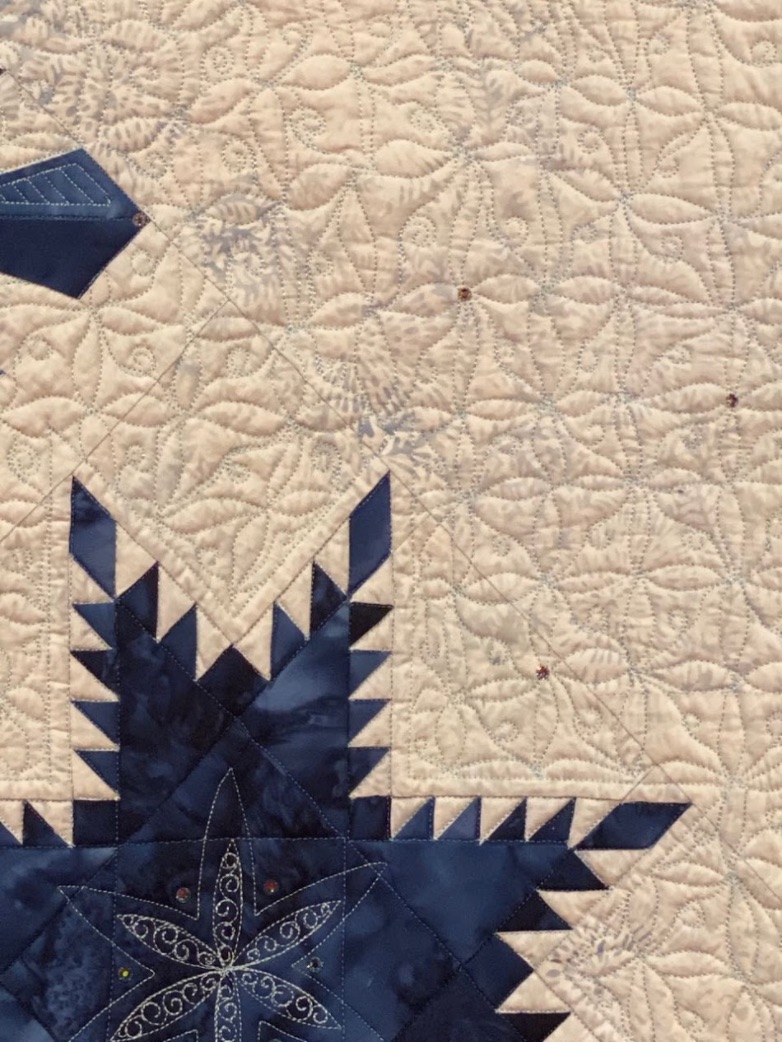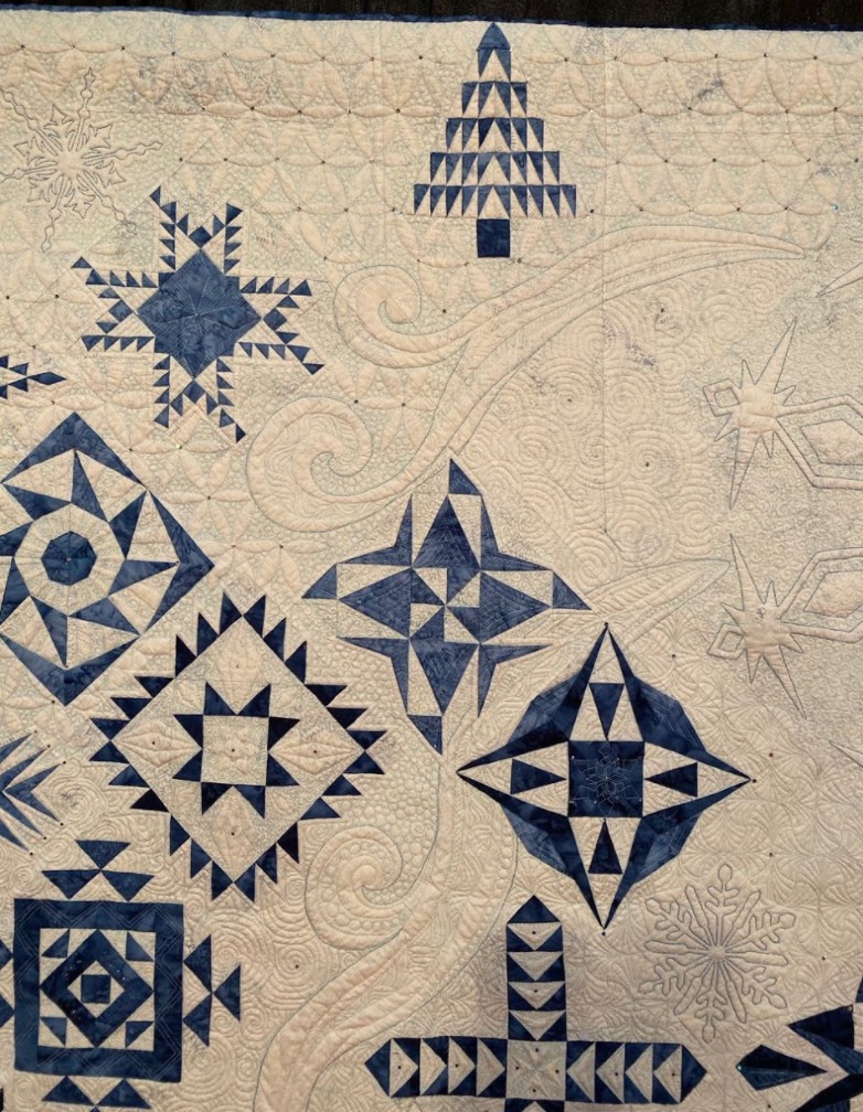 Blue Ice on Denali by Karen Lambdin and Vickie Owen features a flurry of feathered star variations, some of which we've never seen before, and some truly amazing quilting, including a flurry of snowflake designs.