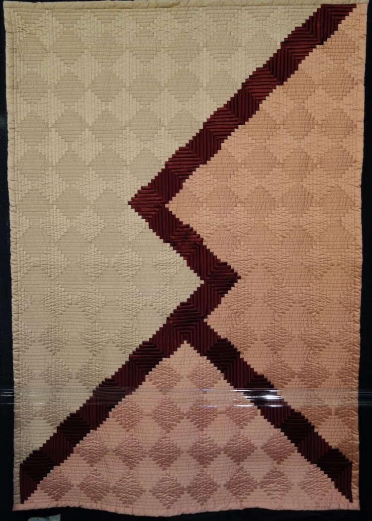 TQS continues its feature of quilts from the exhibit Log Cabin Today! Presented by Brigitte Morgenroth, a series of log cabin quilts created by Brigitte Morgenroth that were featured at the Houston International Quilt Festival in 2015. The exhibit is described as: