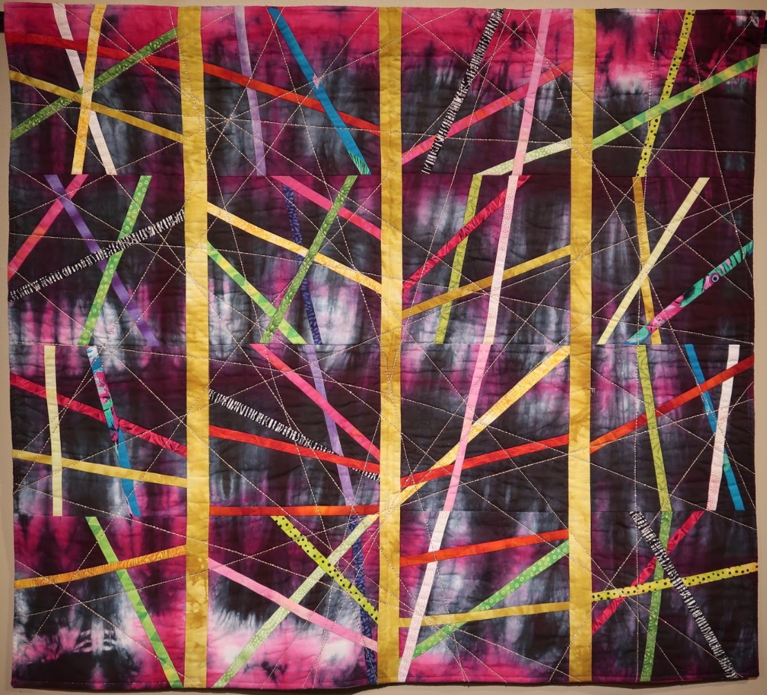 One of his earliest hand dyed experiments, Kevin Womack used one large piece of Shibori fabric in his quilt Network and added more elements on top to see if the integrity of the fabric still shined through all the quilting.