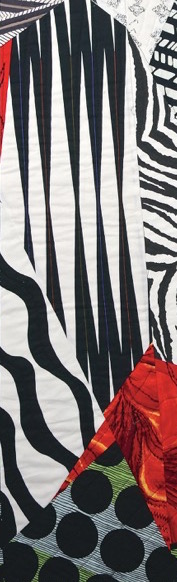 My quilt, Grant’s Zebra, is a good example of creating unity from variety in my fabric selections. I love Zebras and I’ve seen many wonderful zebra quilts where individual black fabric pieces are appliquéd or fused onto the white body of the zebra to create its stripes. However, I thought it would be an interesting challenge to create a pieced zebra quilt where the fabrics did the design work without having to piece each individual stripe. That meant I would need to carefully consider the black and white printed fabric I would use. In this case, different fabric choices, each with some kind of black and white stripy print would help create the overall look of the zebra.