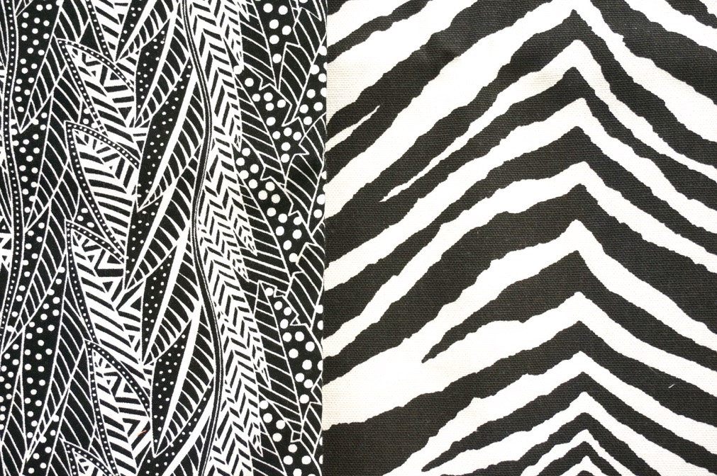Some prints had swirls or dots or leaves, but didn’t provide the look of a zebra (Image on the left). Other prints had a stripy look, but had too much black (Image on the right).