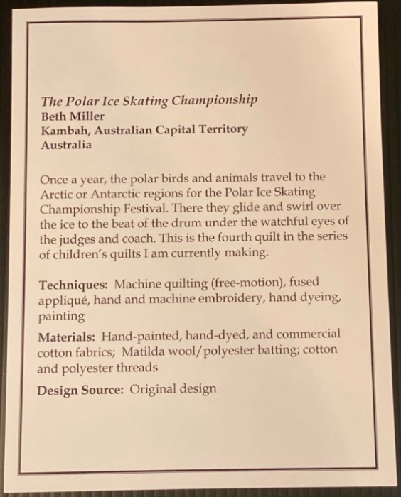 The Polar Ice Skating Championship by Beth Miller of Kambah, Australian Capital Territory, Australia was featured in the Fantasy / Whimsy category at Houston 2019.