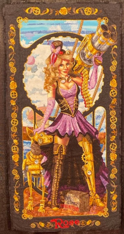 They say that people sometimes choose style over substance. In the case of Kestrel Michaud's quilt, Rose, she chose both. For all the bells and whistles that the quilt features, including Rose's mechanical leg and her steam powered dog, Kestrel felt Rose still needed to look good before she went out into battle.