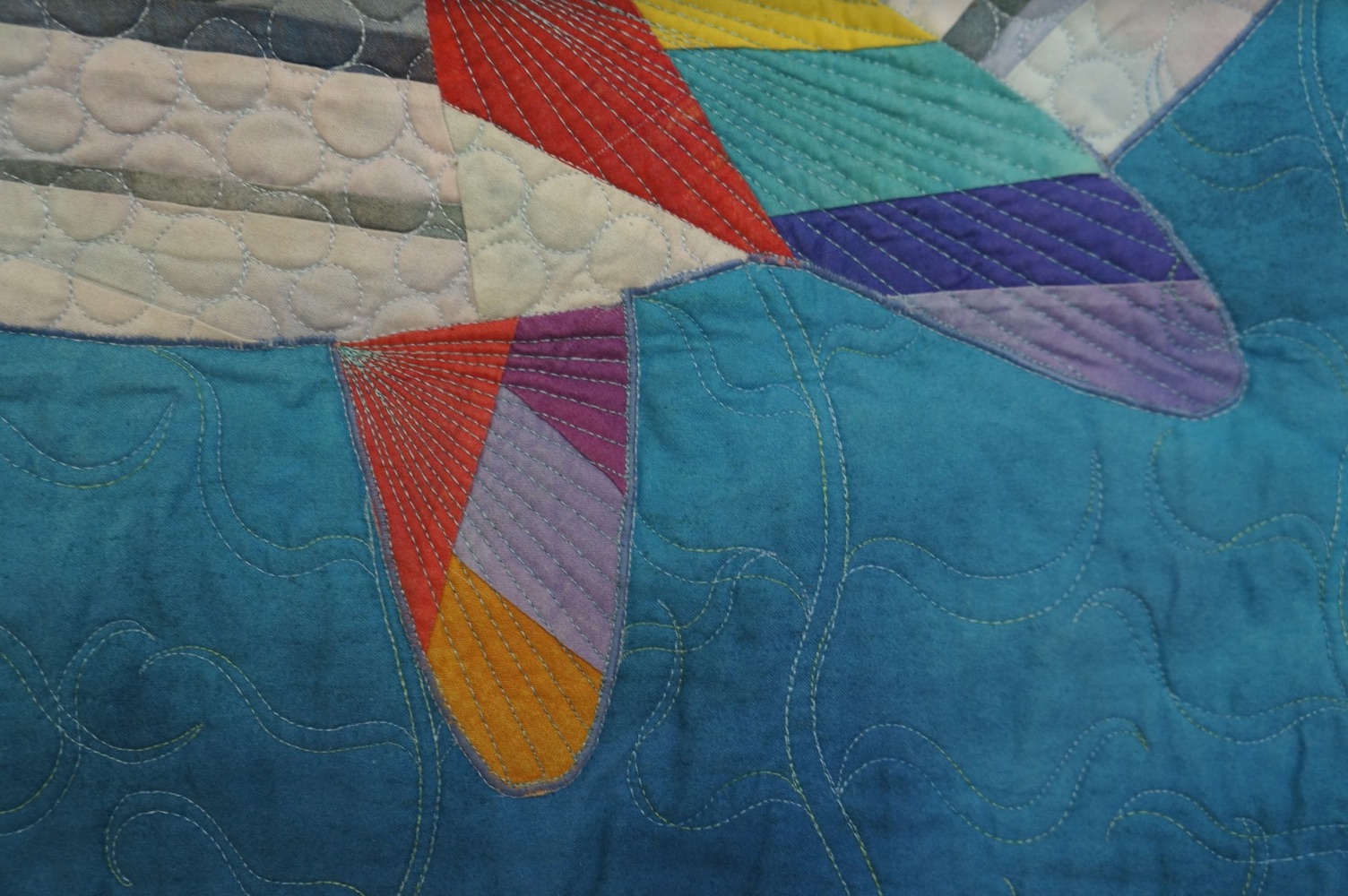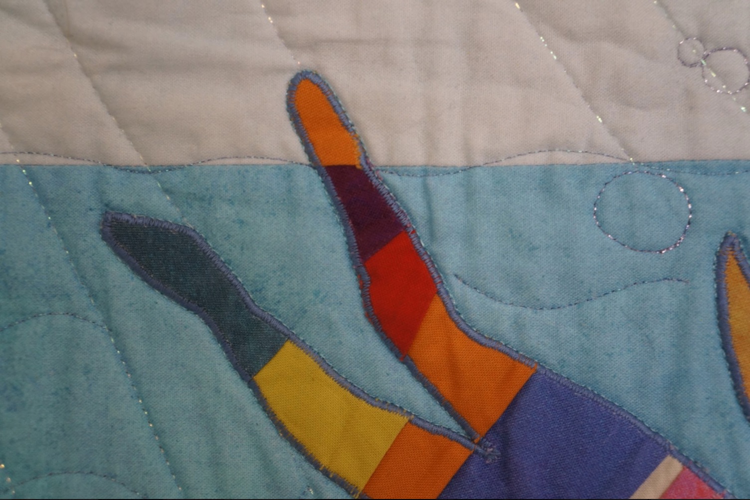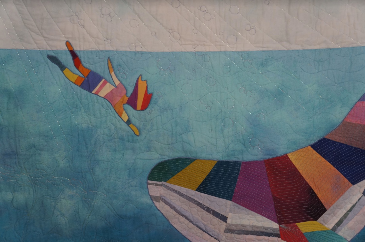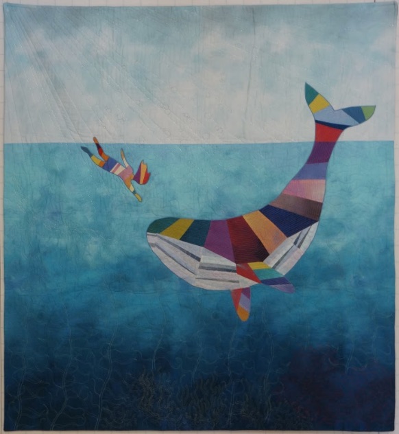 Taking a similar approach to a popular quilt she made before, Jennifer Sampou took a large animal, in this case a whale, and set it against a simple background to emphasis the appliqué work done in the quilt. Featuring quilting by Jenny K. Lyon (Show 2404), enjoy Whale And I.