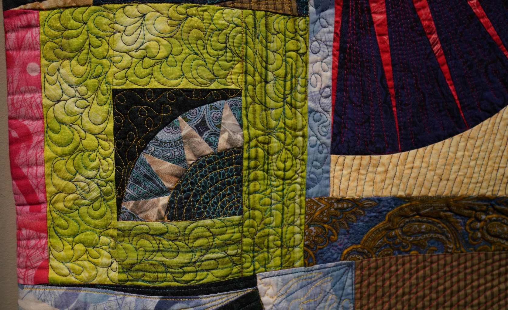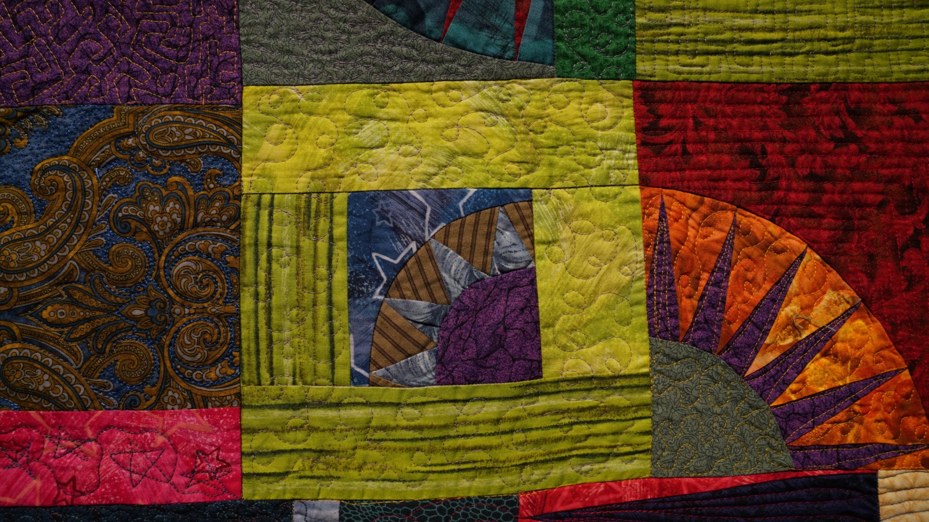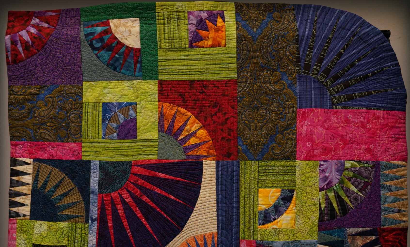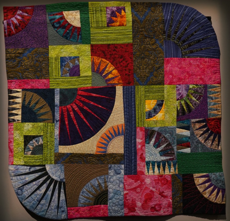 Inspired by Alex's Color Bridge line of fabric, Teri gave herself a challenge and learned to paper piece using New York Beauty Blocks to make her quilt When Alex & Jinny Met in New York Beauty Happened. Composed of Alex's fabric and Jinny Beyer's fabric, hence the name, it is a celebration of color to behold.