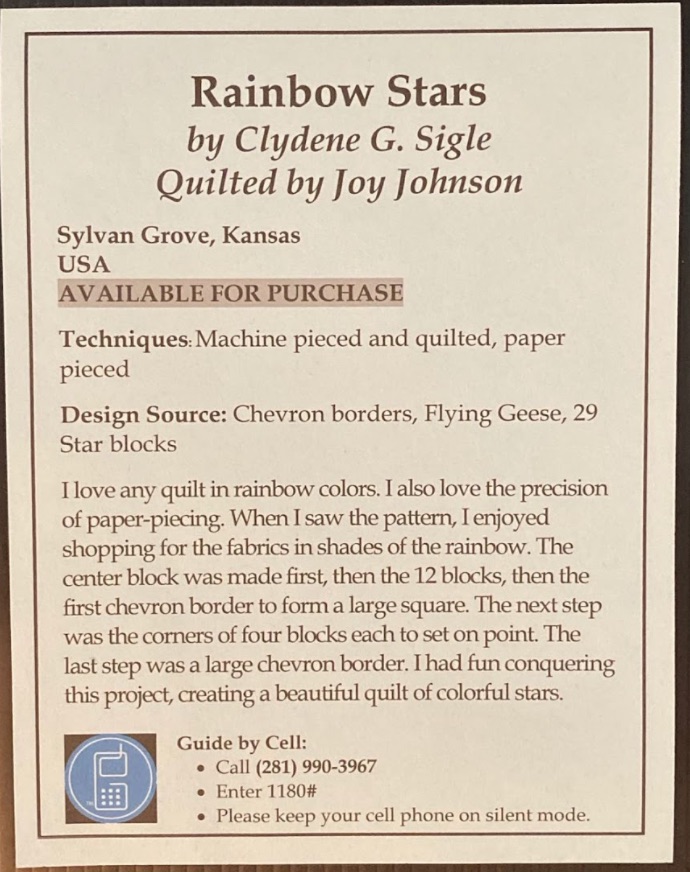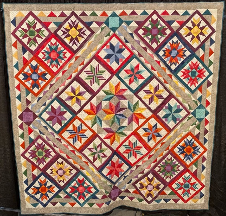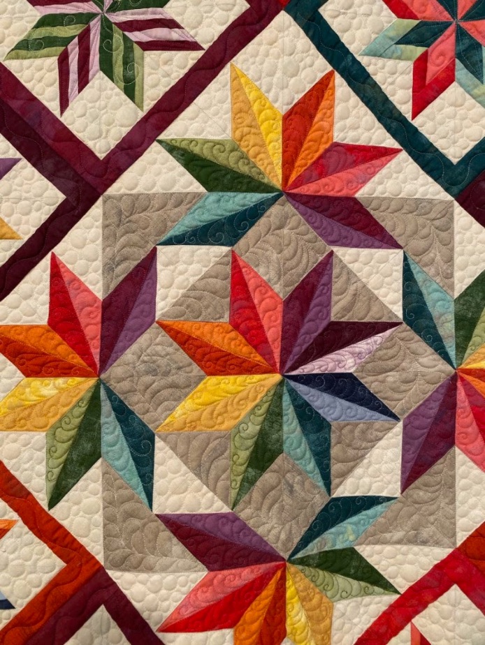 Rainbow Stars by Clydene G. Sigle of Sylvan Grove, Kansas, quilted by Joy Johnson, was featured in the In the American Tradition category at Houston 2019.