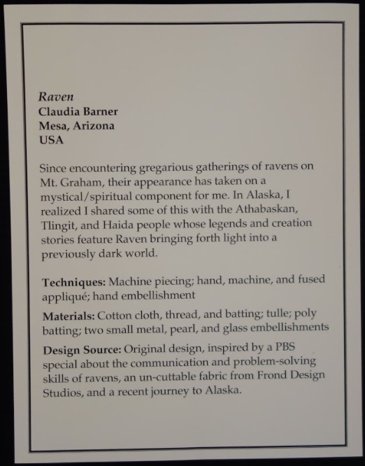 Raven by Claudia Barner of Mesa, Arizona was featured in the Innovative Appliqué category at Houston 2017.