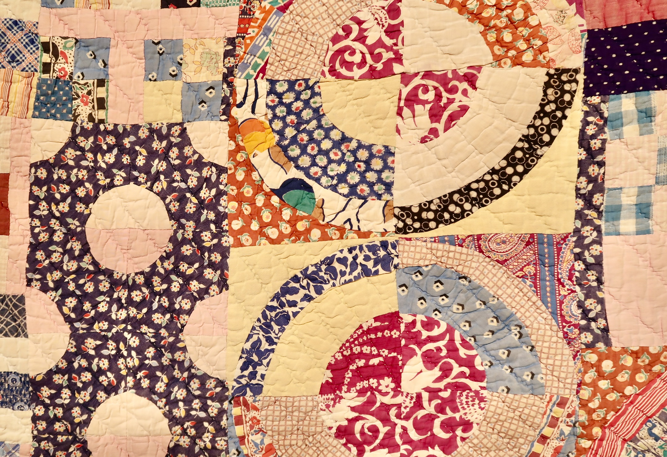 This antique Sampler with Rings quilt from Ricky Tims' personal collection was the main inspiration for the Granny's 1930s Sampler quilt, otherwise known as the Lizzy Albright quilt. The quilt was purchased from antique quilt collector Julie Silber, and the many shapes and designs in the quilt influenced the depression era fabrics that Ricky helped to make for Benartex.