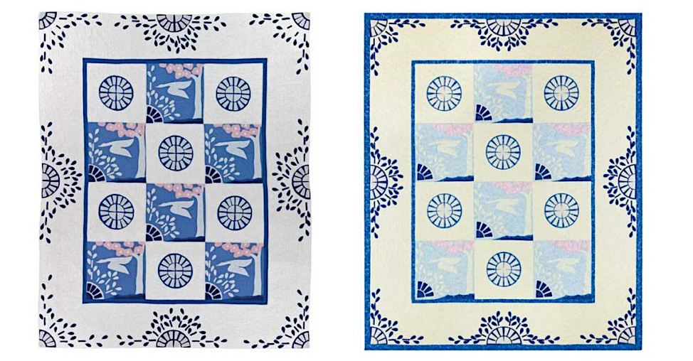 Two versions of the Wild Duck quilt pattern published by Mountain Mist.