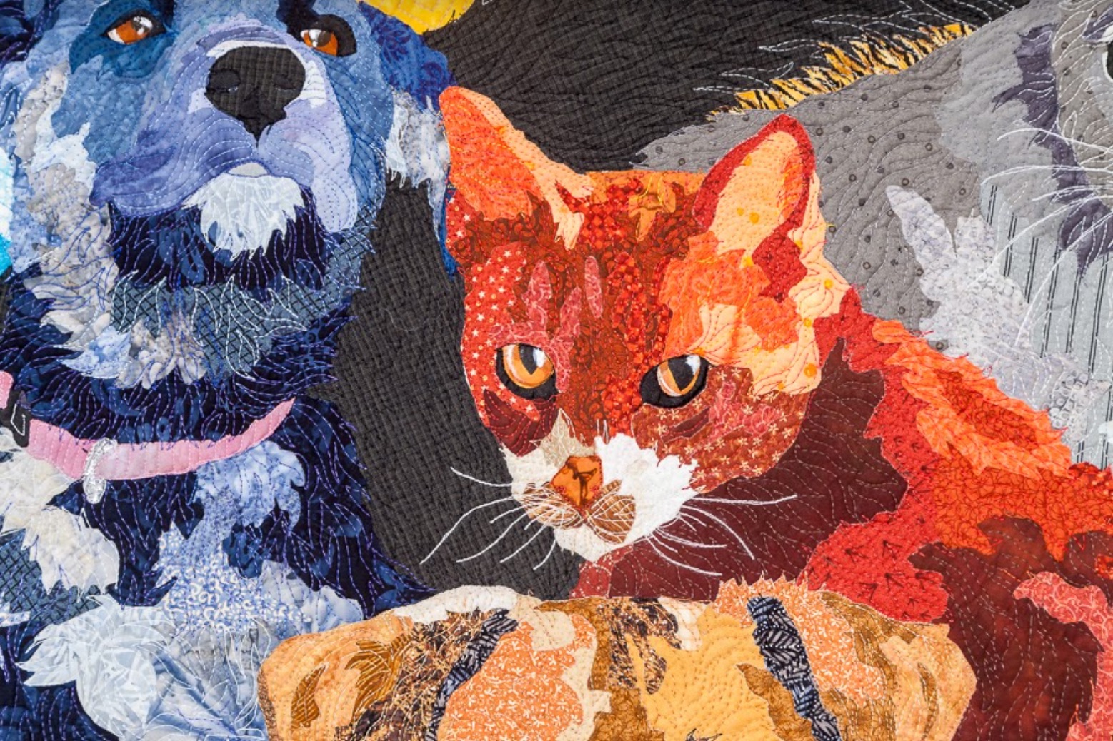 Cats and dogs gather 'round for a good time at Summer Camp in this wonderful quilt from Barbara Yates Beasley.