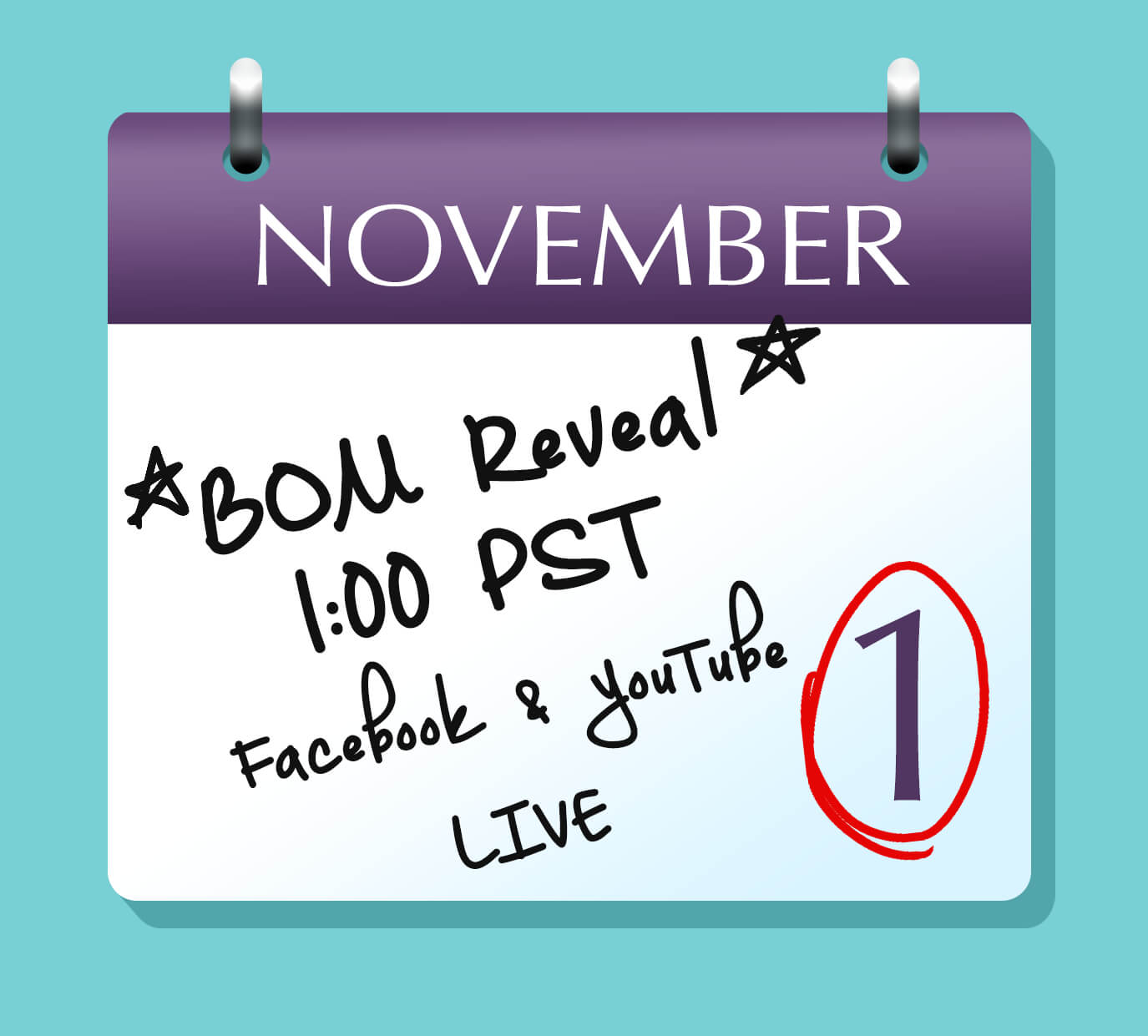 Tune in to The Quilt Show on Facebook & YouTube Sunday Nov. 1, 2020 at 1:00 PM PST to see Alex and Ricky reveal it LIVE. Stay tuned for more details! And in the meantime, keep an eye on this spot for more BOM hints.
