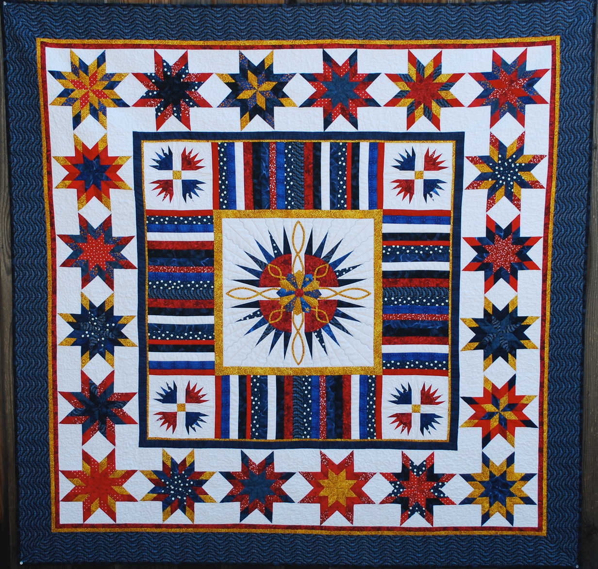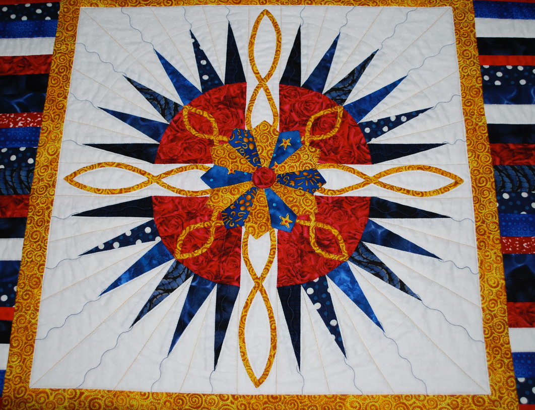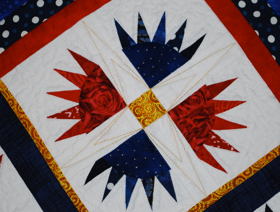 Every year TQS member Mary Kay Davis (mkdquilts) creates a "patriotic quilt." American All-Star is one of those quilts and can be found in the Lark Crafts Publication, 500 Traditional Quilts.