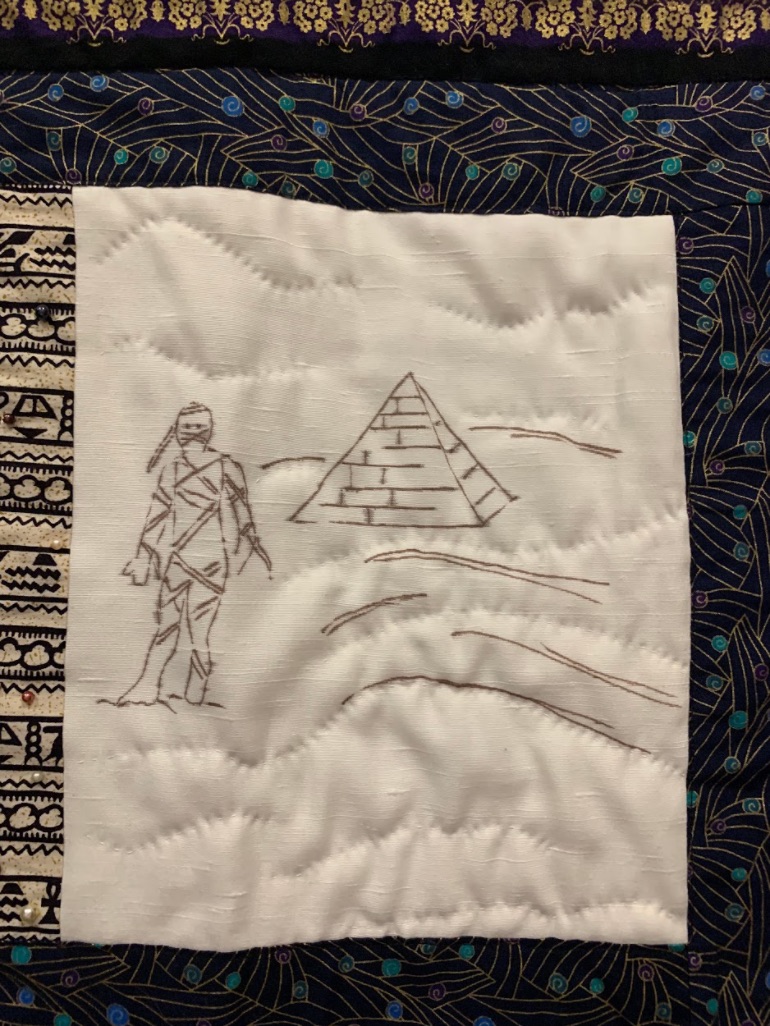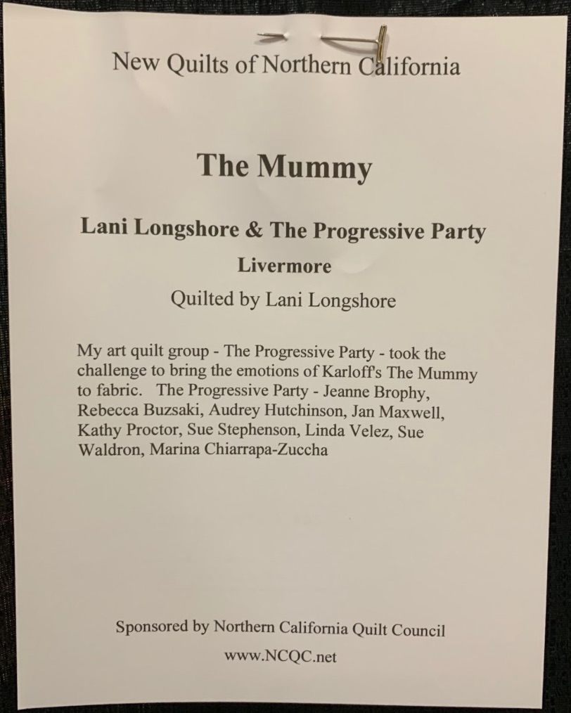 The Mummy by Lani Longshore & The Progressive Party, quilted by Lani Longshore, of Livermore, California was featured at the Pacific International Quilt Festival (PIQF) 2019.