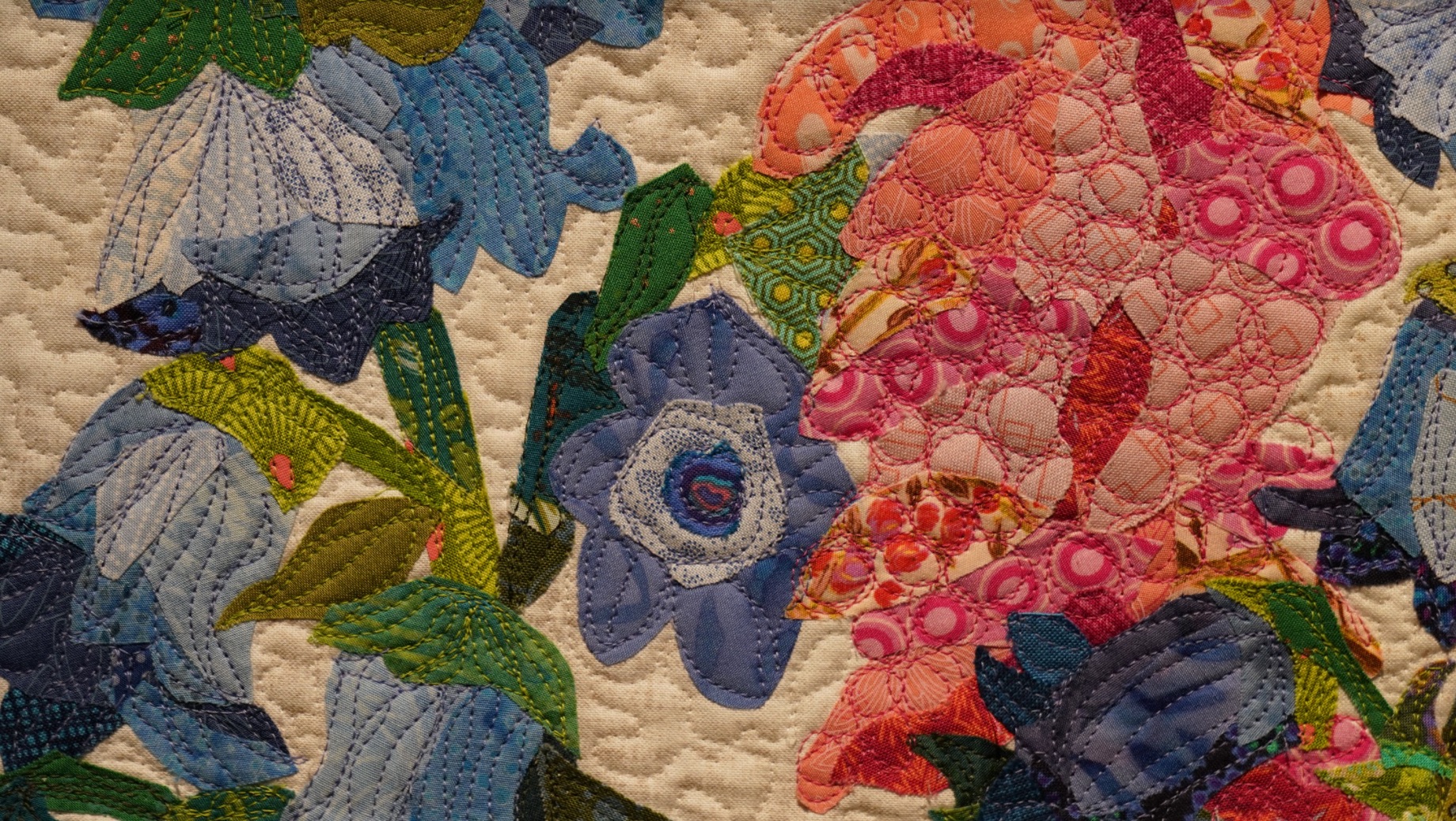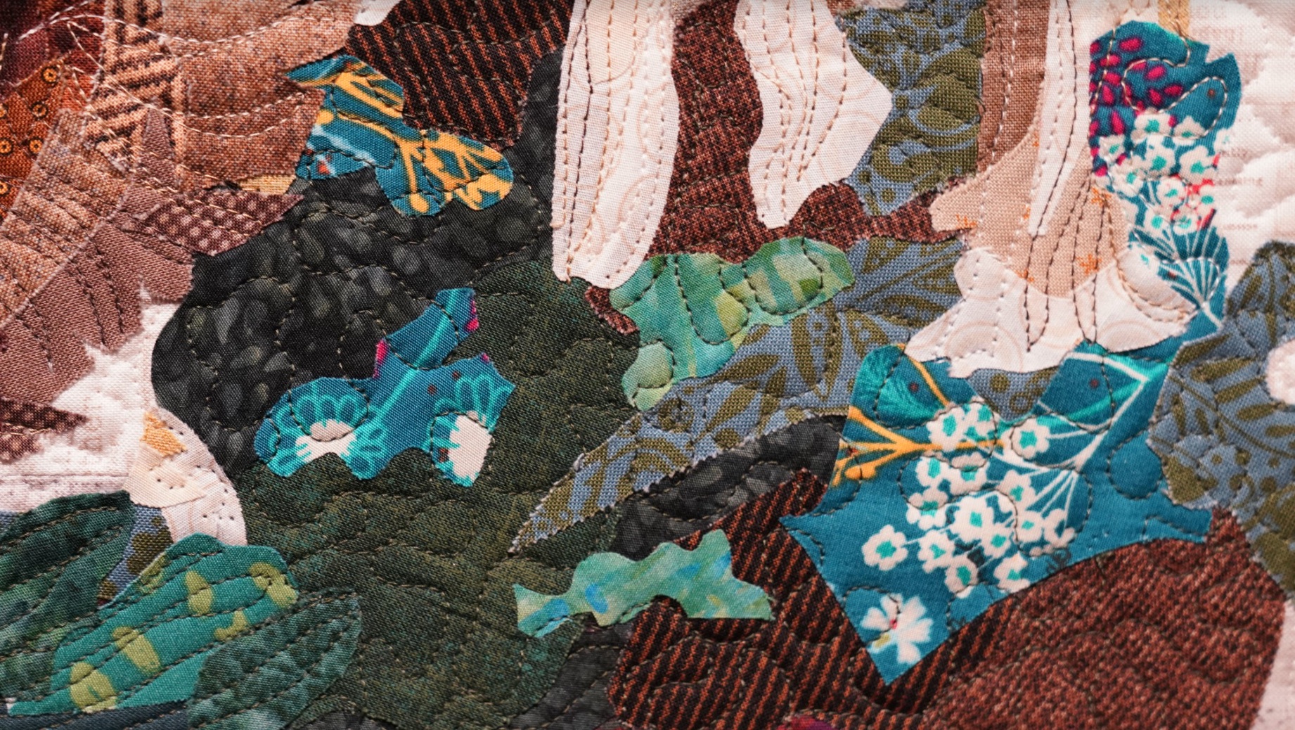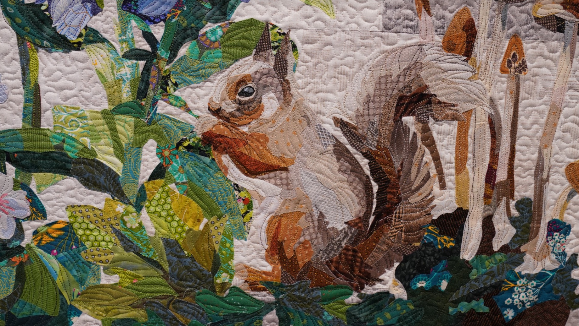 Inspired by and paying homage to her hometown of Salt Lake City, Woodlands is Emily's most recent quilt. Done in her trademark collage quilting style, you feel as if its centerpiece squirrel is almost going to come out and greet you.