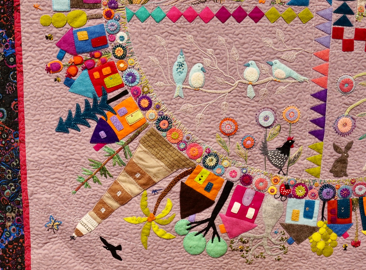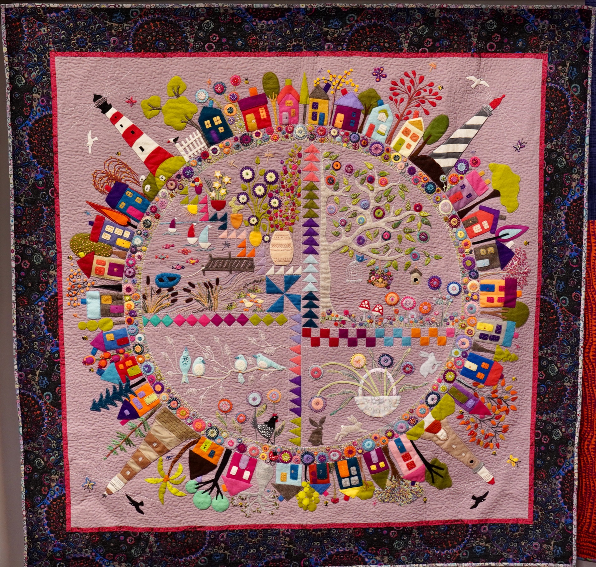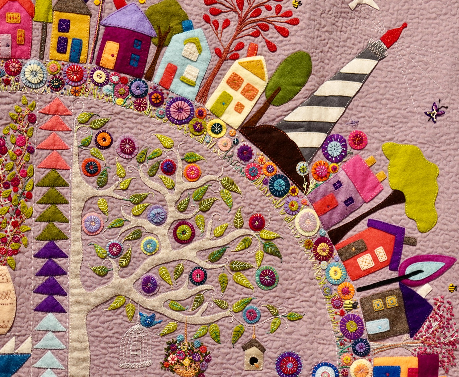 When people hear the name Wendy Williams in the quilting world, they probably think of her Round the Garden quilt. Featuring wonderful wool work and embellishments, it stands out most because of its circular design. This design, which you may have already figured out, is a predecessor and influence on our 2021 BOM Color My World.