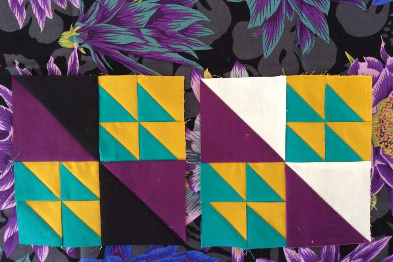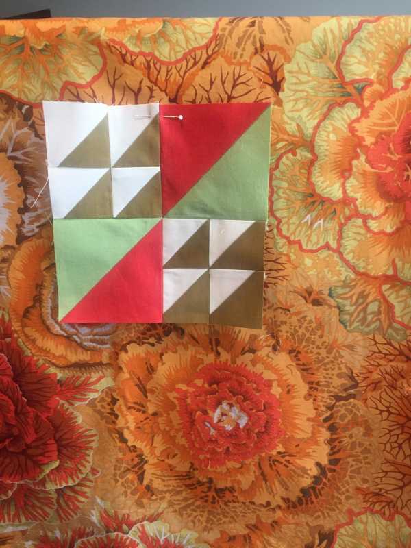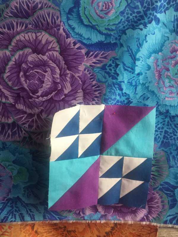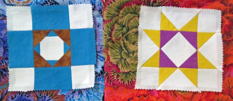 Both of my New Album blocks were tweaked. The one closest to the original block is on the left. The block on the right is New Album modified and using complimentary colors. In the real world the block on the right probably has a defferent name. But the result is where my heart and and fabric took me.