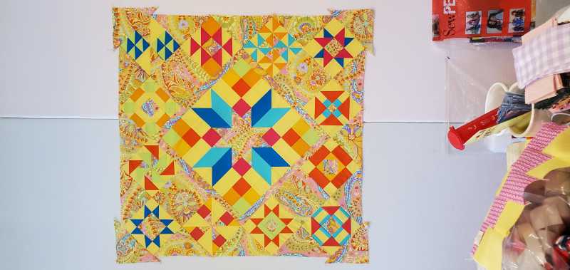 their 1/2 inch seam allowance. You could make several borders to get the size so it would be math friendly. I think I would just make the yellow triangles bigger and float