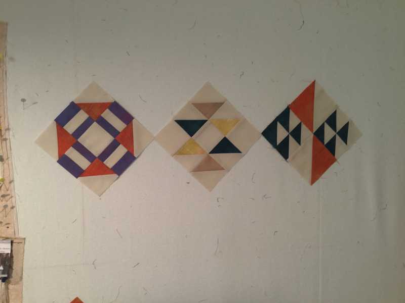 Monday’s Double X blocks done! Boy, solids sure aren’t as forgiving as prints, are they? I am using Alex’s Kaffe mystery as a skill builder to improve piecing techniques. It will be interesting to see where this all ends up!